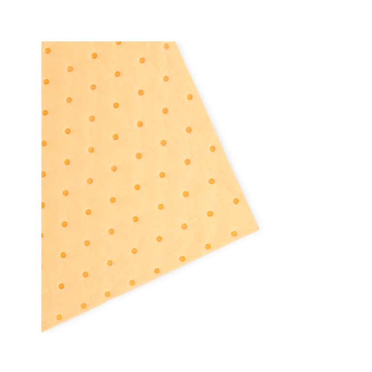 Fabricated from a heavy weight, high loft fabric, this unique product offers high absorption and retention capabilities. This product will absorb up to ten (10) times its weight and is selective to most acids and bases.