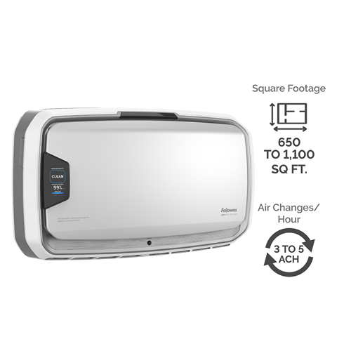 - Delivers 3-5 air changes per hour (ACH) in 600-1100 square feet shared spaces such as classrooms and conference rooms. Quiet operation