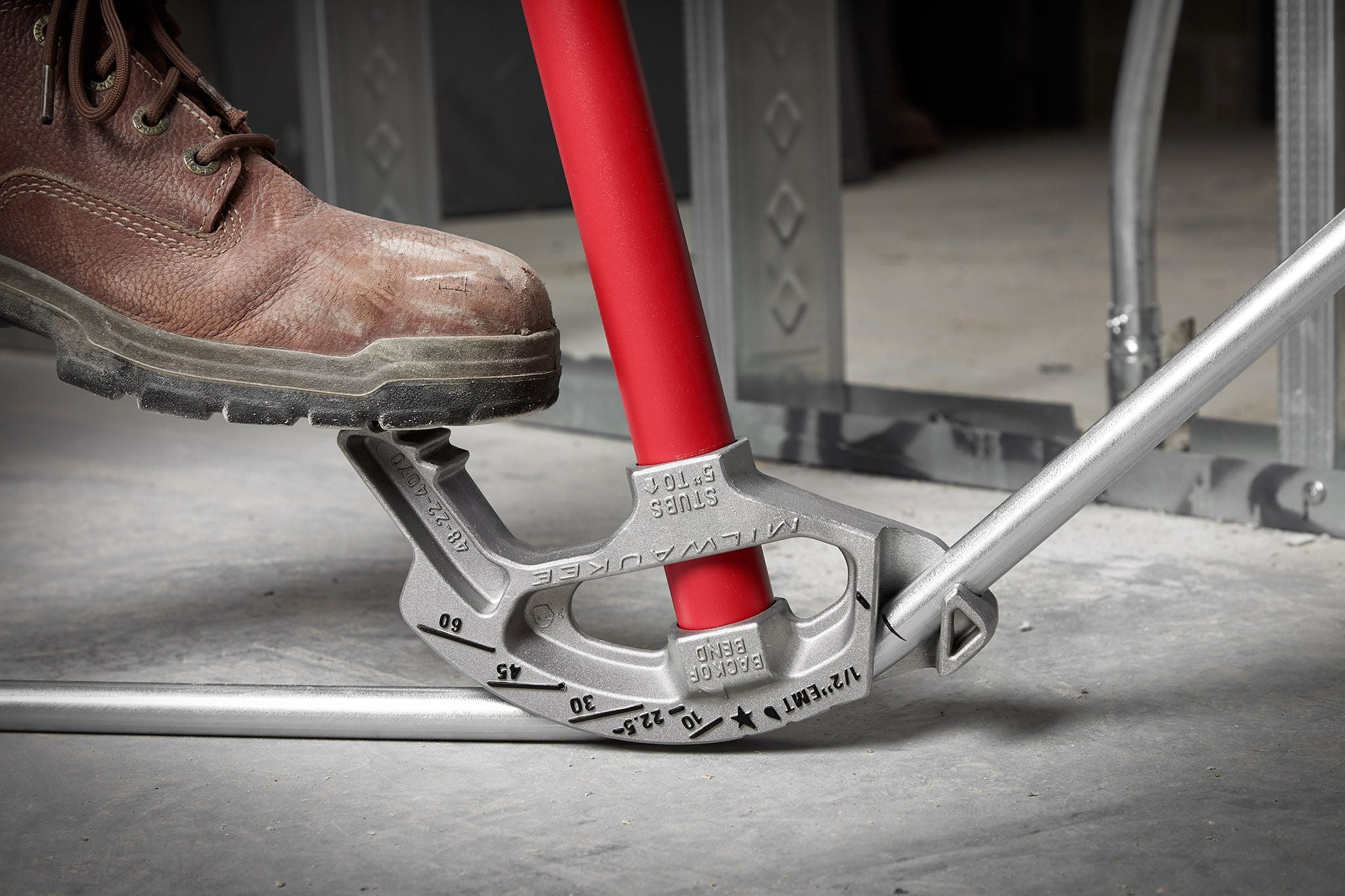 Milwaukee® conduit benders feature high contrast markings for the best visibility allowing users to easily and accurately make bends. A reinforced hook and pedal provide added durability while a secure double bolted handle won’t loosen. These conduit benders feature the most bending references and a wear-resistant reference chart for easier use. Milwaukee conduit benders are available in 1/2 in. EMT, 3/4 in. EMT, and 1 in. EMT heavy duty iron models and 1/2 in. EMT and 3/4 in. EMT lightweight aluminum models.
