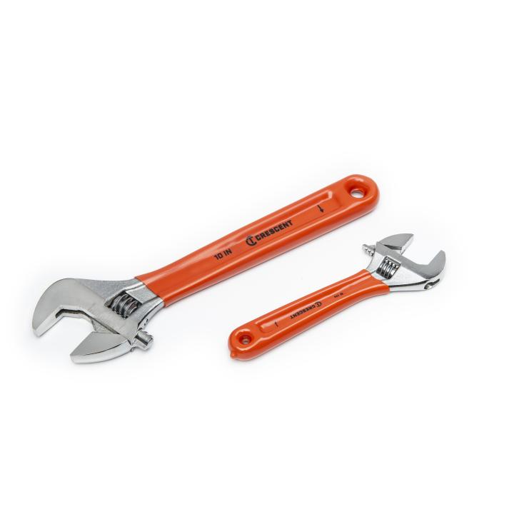 The Crescent 6-inch and 10-inch Adjustable Cushion Grip Wrenches feature a durable, comfortable, molded rubber cushion on their wide handles. A large knurl allows for easy adjustment and a tight-fitting hex jaw design reduces slippage and tightly grips the fastener for solid, secure operation. The corrosion-resistant chrome finish helps prevent rust.