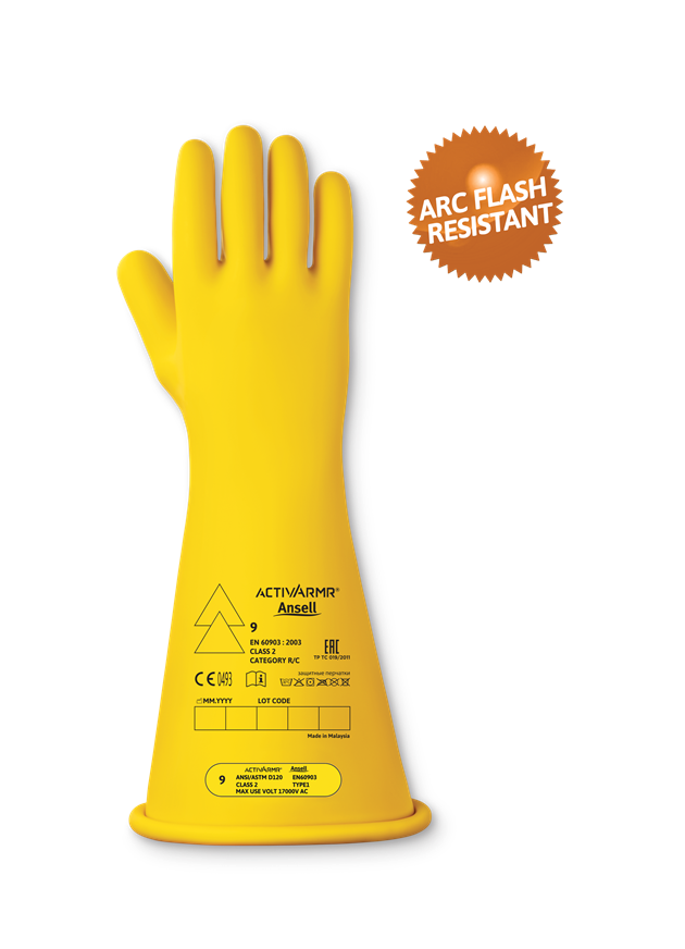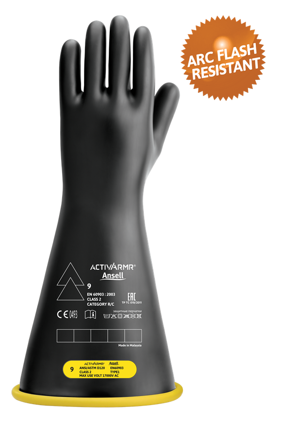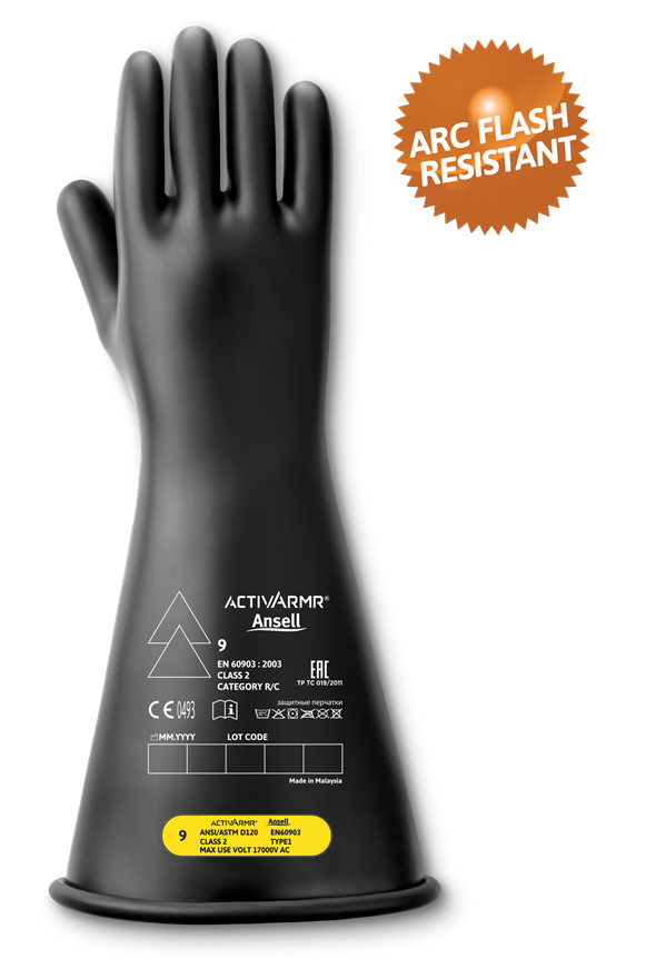 Electrical Insulating Gloves - Ansell ActivArmr® Electrical Insulation Gloves, 16", Class 2, RIG216B / RIG216Y / RIG216YBSC / RIG216YBBC