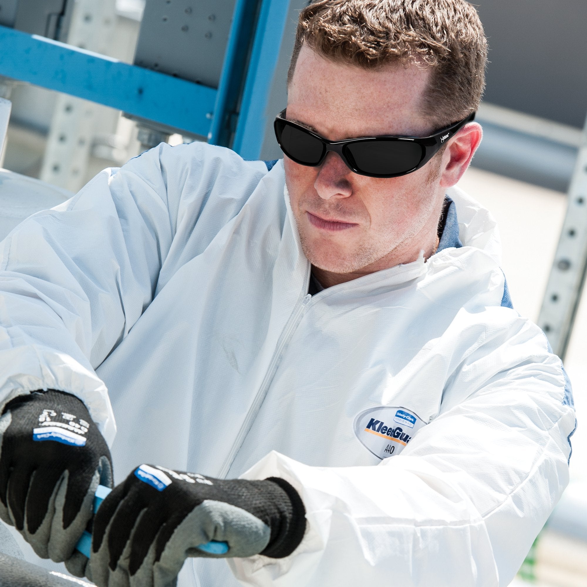 KleenGuard™ Personal Protective Equipment (PPE) enables rather than inhibits – allowing for maximum productivity and safety for you and your employees. When your employees want to look good, keep comfortable and stay protected, the KleenGuard™ Hellraiser Safety Glasses (with black frame and smoke lens) are a great choice. These safety glasses feature a high-performance, durable polycarbonate lenses, which provide 99.9% UV protection (UVA/UVB/UVC). They are lightweight and stylish for men and women, and feature single lens wraparound protection that's designed for use at work or home. The flex-point temples help provide comfort and stability for use for long stretches of time. These safety glasses are a great choice for industrial manufacturing. When your team wants to look cool, stay comfortable and enjoy superior eye protection, you can trust KleenGuard™ safety glasses. Making the right Personal Protection choice is difficult. Perform with distinction with KleenGuard™ Personal Protective Equipment (PPE).