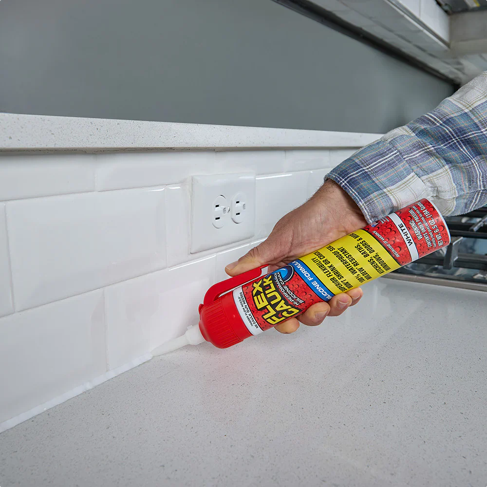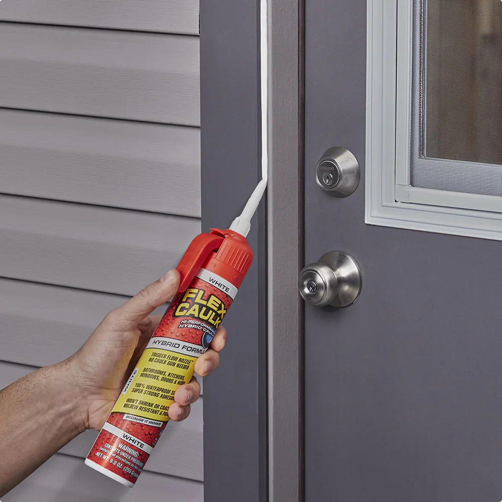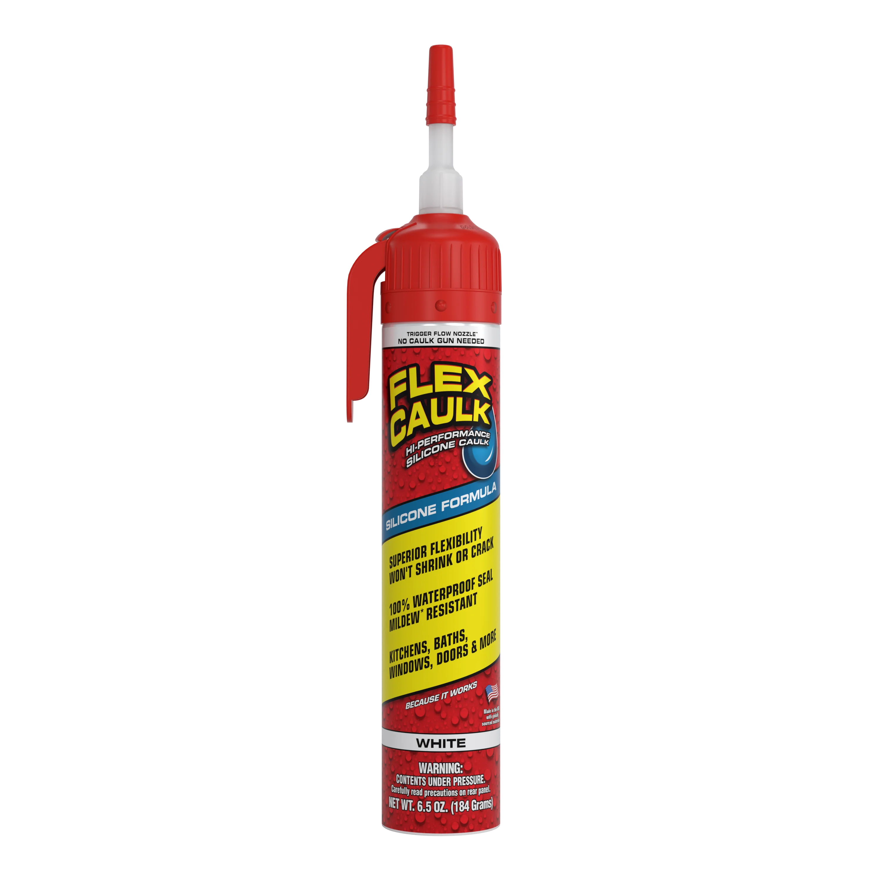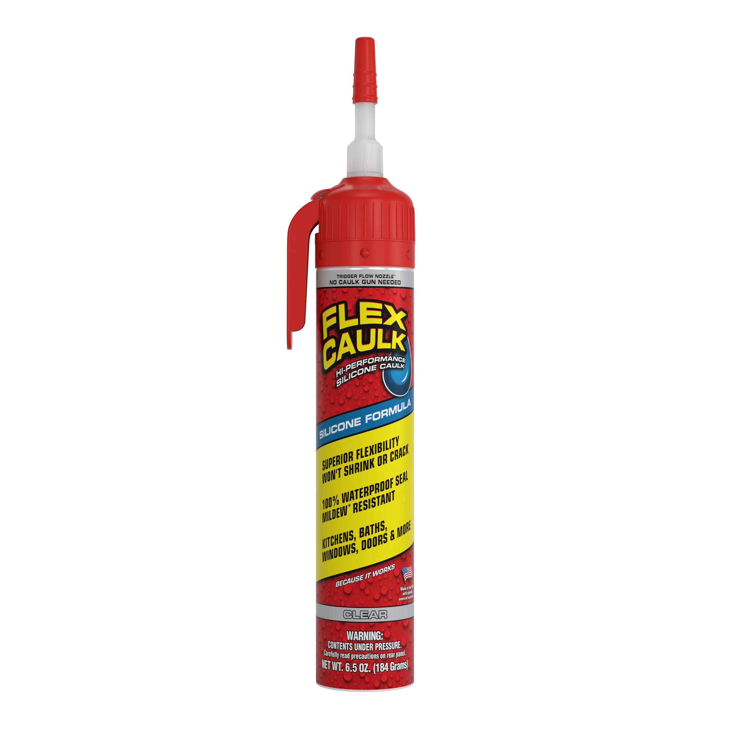 Flex Caulk™ Hybrid (advanced hybrid polymer caulk) and Flex Caulk™ Silicone (100% silicone caulk) are Flex Seal's latest innovations in caulking technology. They are delivered through their Adjustable Trigger Flow Nozzle™, which eliminates the need for a caulking gun and allows you to control the flow of caulk. Just adjust the flow setting and push the trigger for a perfect bead. And when you stop, it stops. There's no running, no dripping, and no mess.