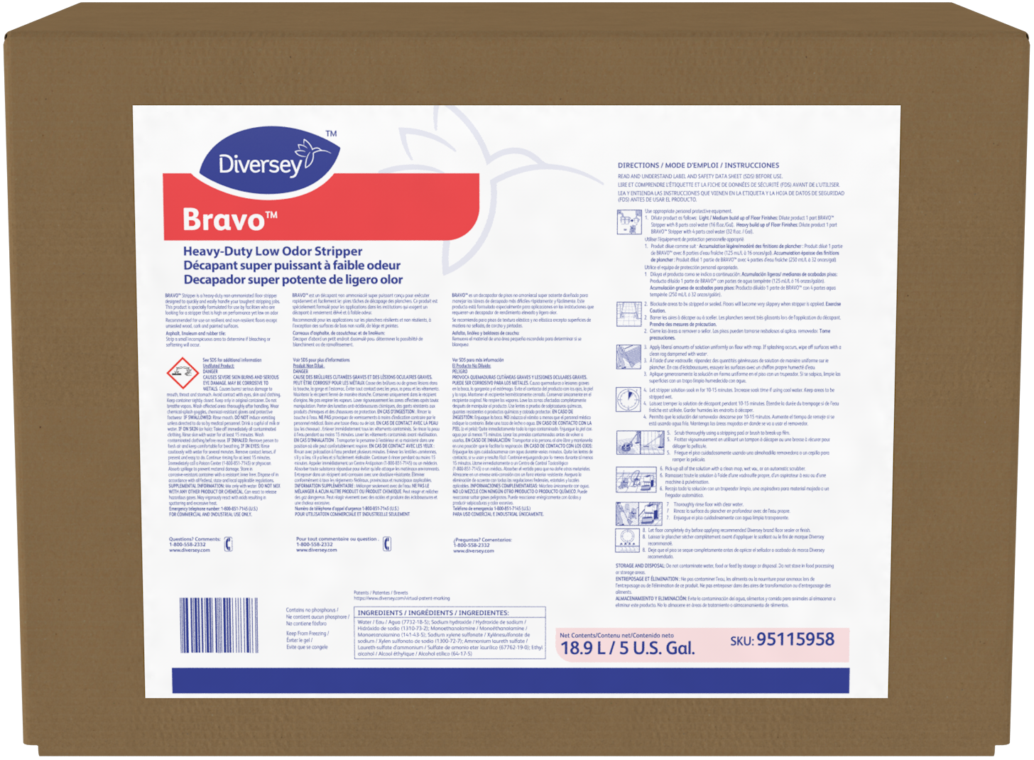 Stripping Formula - Diversey Bravo® Heavy Duty Low Odor Stripper, 5 Gal/18.9 L, 95115958🍁
