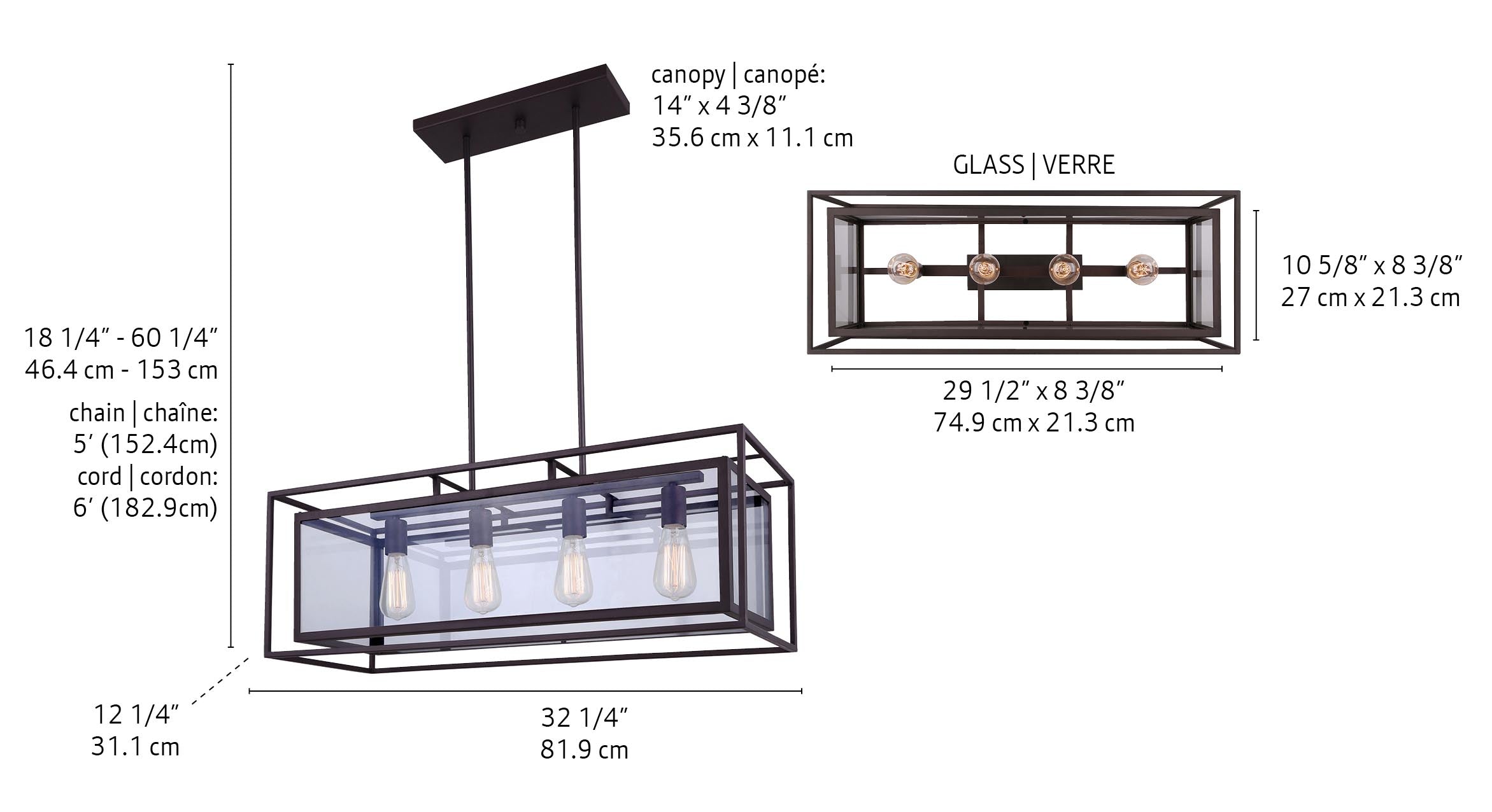 Brighten up any space with elegant design of the Canarm ISOLA 4-Light Chandelier. The clear glass is surrounded by an oil-rubbed bronze frame for a look that truly stand outs. Two different-sized suspension rods are included, so you can hang the lights at just the right height. The chandelier requires four 100-watt Type-A bulbs (not included).