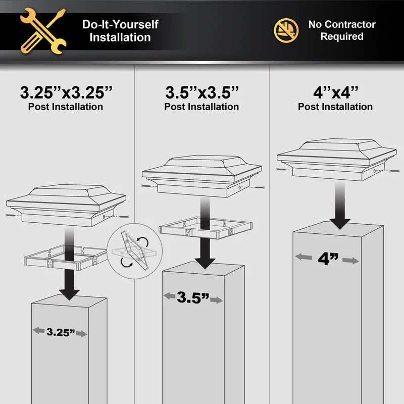 - Will fit over an actual 4"x4", 3.5"x3.5", or 3.25"x3.25" post