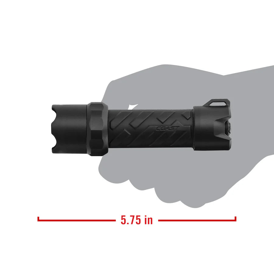• Dial in the shape of light you need for the situation. COAST’s TWIST FOCUS™ system makes it easy to move between spot and flood beams by simply rotating the head of the flashlight.