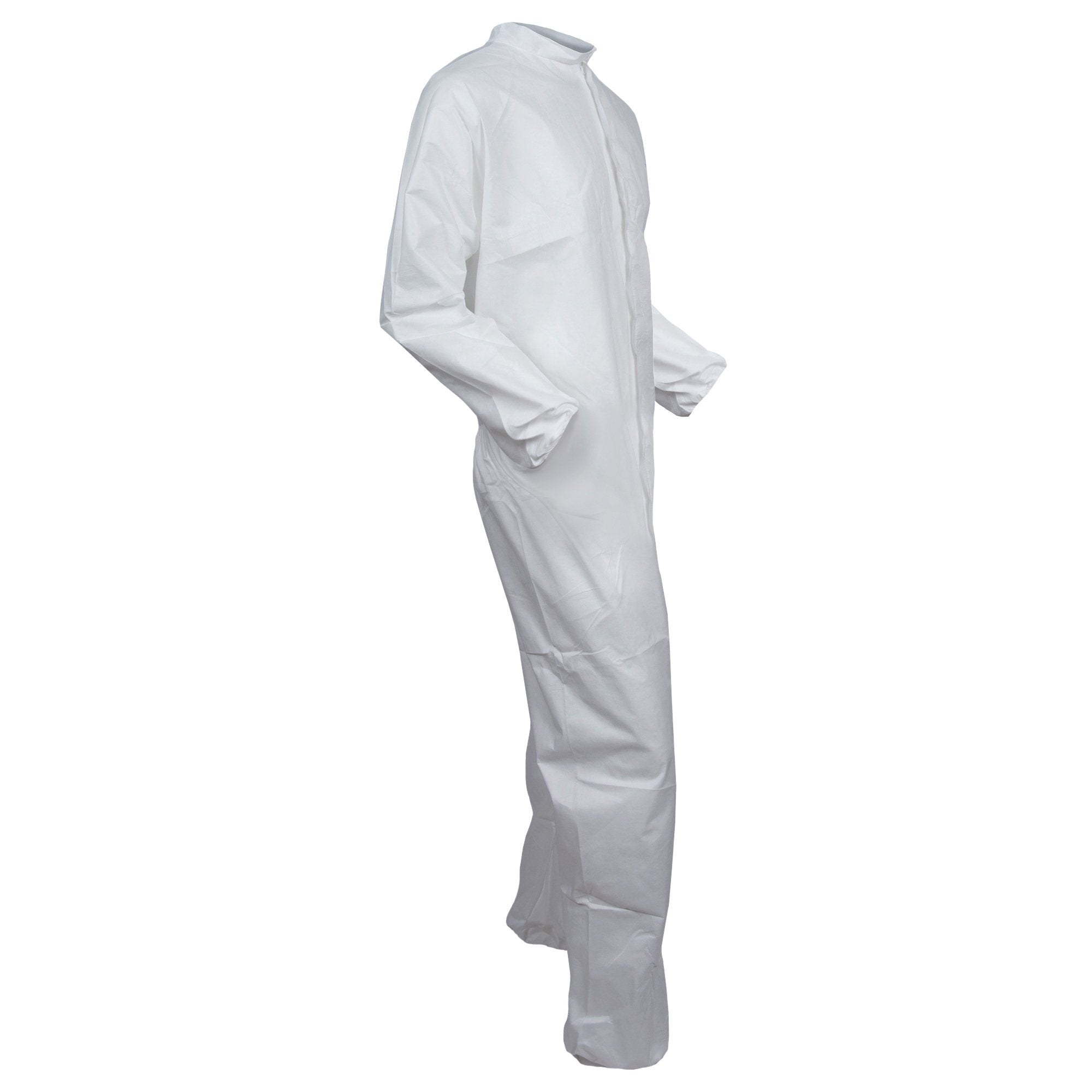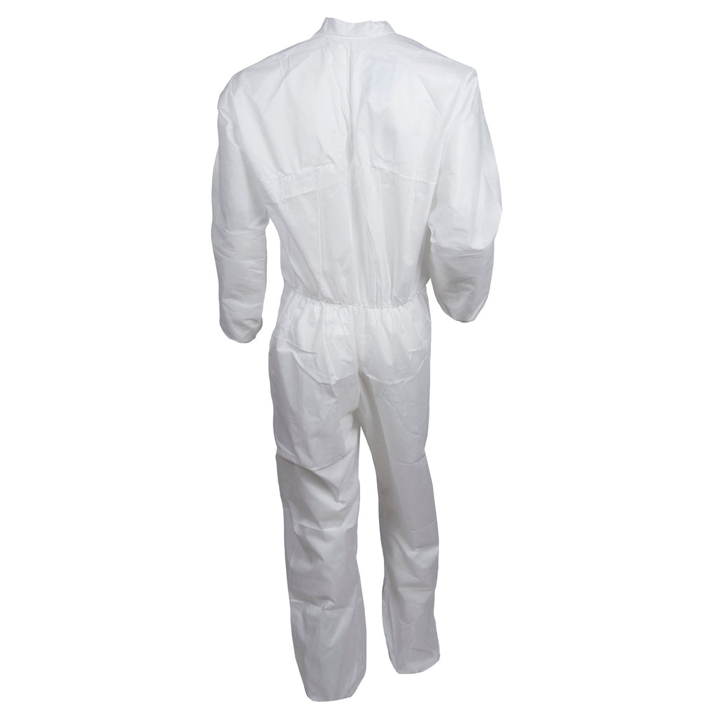 - 25 Coveralls/Case; KleenGuard™ A30 Breathable Splash & Particle Protection Coveralls; Zipper Front with Elastic Back; White; Reflex Design; Large