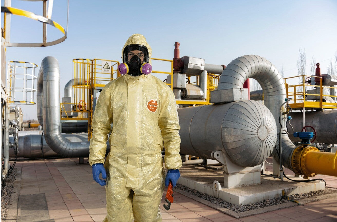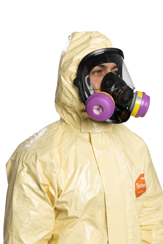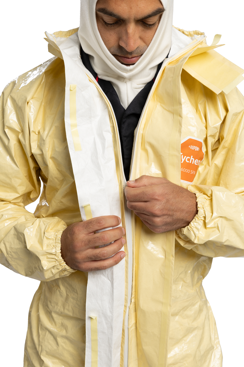 DuPont™ Tychem® 6000 SFR garments provide broad chemical protection and secondary flame resistance in a durable, lightweight garment for use in environments where chemical splash and flash fire hazards exist. Designed to be worn over primary flame-resistant protective clothing, Tychem® 6000 SFR garments help provide industrial workers and hazmat responders with permeation protection against a range of chemicals while providing escape time from flash fires. Tychem® 6000 SFR fabric provides at least 30 minutes of protection for more than 250 chemical challenges including chemical warfare agents, toxic industrial chemicals, and flammable organic solvents.