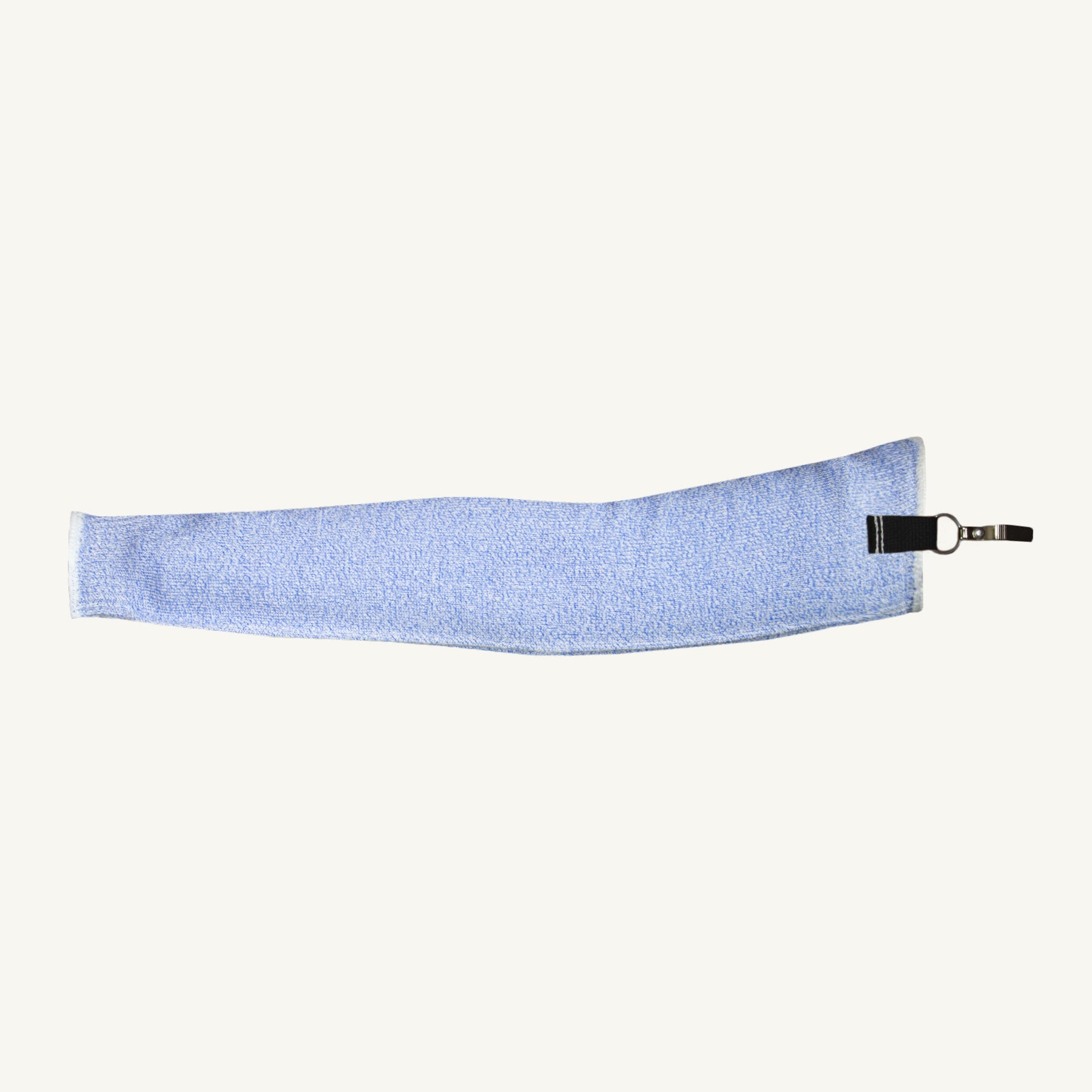 Antimicrobial food-safe sleeves with extreme cut protection and blue knit to help detect food contamination.