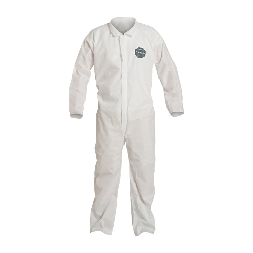 Coveralls - DuPont ProShield® 10 Collar, Open Wrists & Ankles, Elastic Waist, Serged Seams, White (Case of 25) PB120S