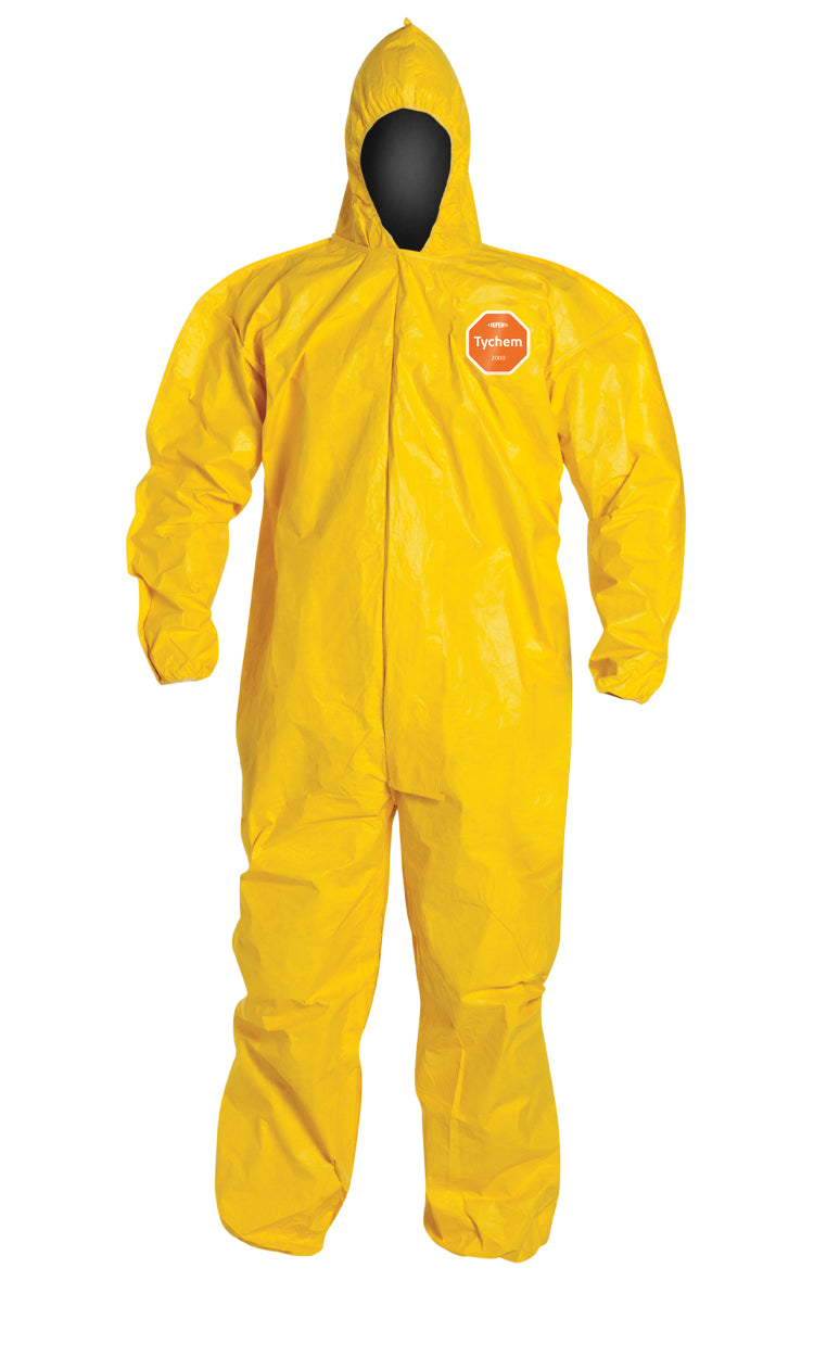 Coveralls - DuPont Tychem® 2000 Standard Fit Hood, Stormflap, Elastic Wrists & Ankles, Storm Flap w/ Adhesive Closure, Bound Seams, Yellow (Case of 12) QC127B - M is currently out of stock.