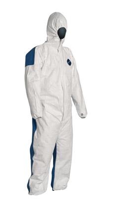 DuPont™ Tyvek® 400 D garments combine the protection, durability and comfort of DuPont™ Tyvek® fabric on the front and the comfort, softness and breathability of DuPont™ ProShield® 10 fabric on the back. The DuPont™ Tyvek® 400 D garments are suitable for applications where comfort requirements are combined with limited protective requirements for frontal exposures. Garments are available in a variety of styles. Applications include fiberglass and composite manufacturing, wind turbines, boat construction and repair, remediation, and maintenance.