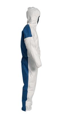 Comfort fit design based on extensive wearer input to provide our most comfortable garment design that: enables a greater range of movement while stretching and bending, provides a more tailored fit, offers reinforcement in high stress areas for fewer blowouts, utilizes a longer zipper for easier donning and doffing and an elastic waist to better position the garment. (122)