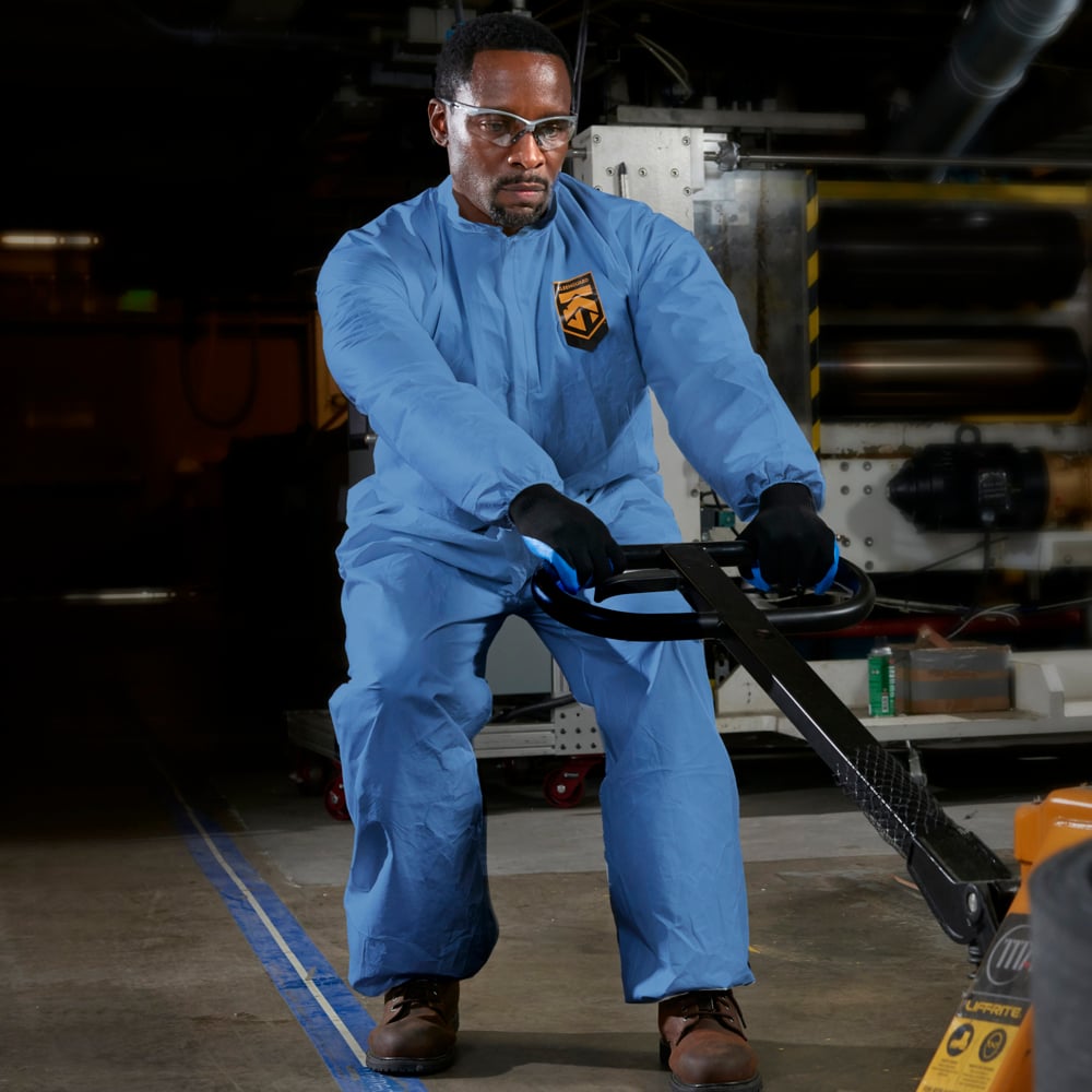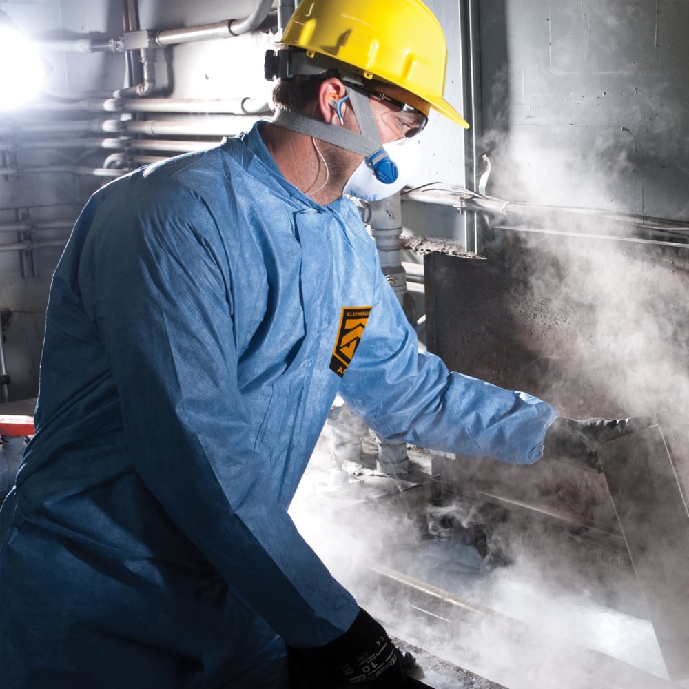 KleenGuard™ Personal Protective Equipment (PPE) enables rather than inhibits – allowing for maximum productivity and safety for you and your employees. When you have a sensitive job to tackle – like working in a crime lab, crime scene cleanup, forensic uses, embalming and research – the KleenGuard™ Chemical Resistant Suit (A60 Bloodborne Pathogen & Chemical Splash Protection Coveralls) is a great solution. They are designed to protect the wearer, as they pass the ASTM F1670/F1671 test for penetration of blood, body fluids and bloodborne pathogens, and they provide protection against some chemicals (chemical protection suit). They feature the Reflex Coverall Design, which provides a fuller cut for added range of motion, are 7.5 less likely to rip out (vs. ANSI minimums), are 6% longer body length and 12% more chest room. This model comes with a zipper front (with storm flap) and elastic back, wrists and ankles. Making the right Personal Protection choice is difficult. Perform with distinction with KleenGuard™ Personal Protective Equipment (PPE).