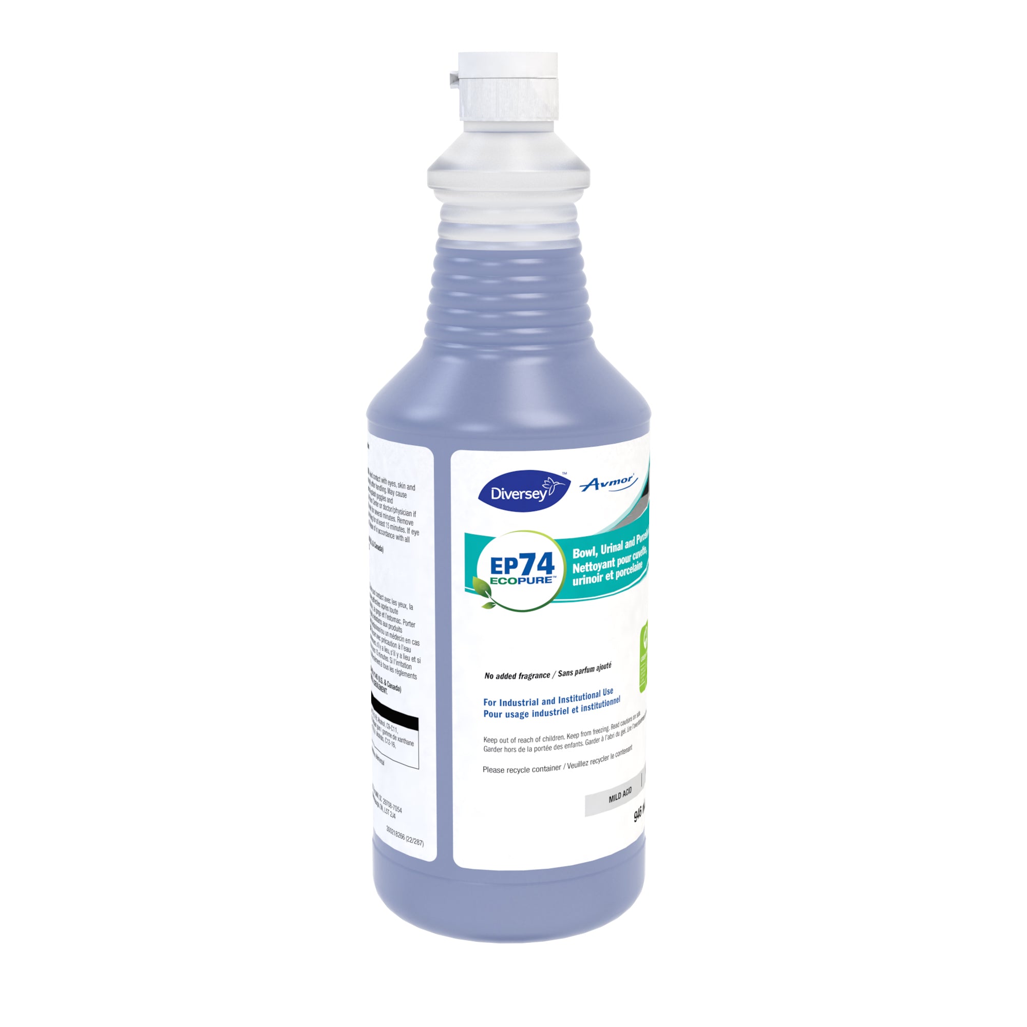 EP74 is a unique formulation designed to effectively and effortlessly clean bowls, urinals and porcelain sinks. It is a mild citric acid based all-purpose cleaner for porcelain and tile. EP74 thick texture clings to all vertical surfaces rendering cleaning fast and scrub-free. Cleans in one application. Effectively removes hard water deposits, soap scum and urine salts.