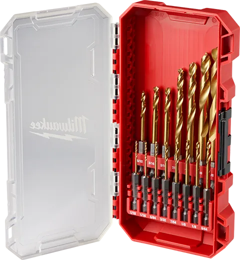 The MILWAUKEE® SHOCKWAVE Impact Duty™ 15PC RED HELIX™ Titanium Drill Bit Set is engineered for extreme durability and long life. The QUAD EDGE™ tip delivers a precision start and features four cutting edges to create smaller chips for faster material removal and less heat leading to improved performance. Designed with a VARIABLE HELIX™ flute that begins with an aggressive 35° helical angle and ends at 15° for rapid chip removal. The bits also feature an internal thicker tapered web that greatly increases strength, reducing premature breakage. Ideal for various applications including but not limited to wood, plastics, and metals. MILWAUKEE® RED HELIX™ Titanium Drill Bits provide up to 5X life vs. black oxide drill bits. Set is organized in a customizable accessory case designed for use in PACKOUT™.