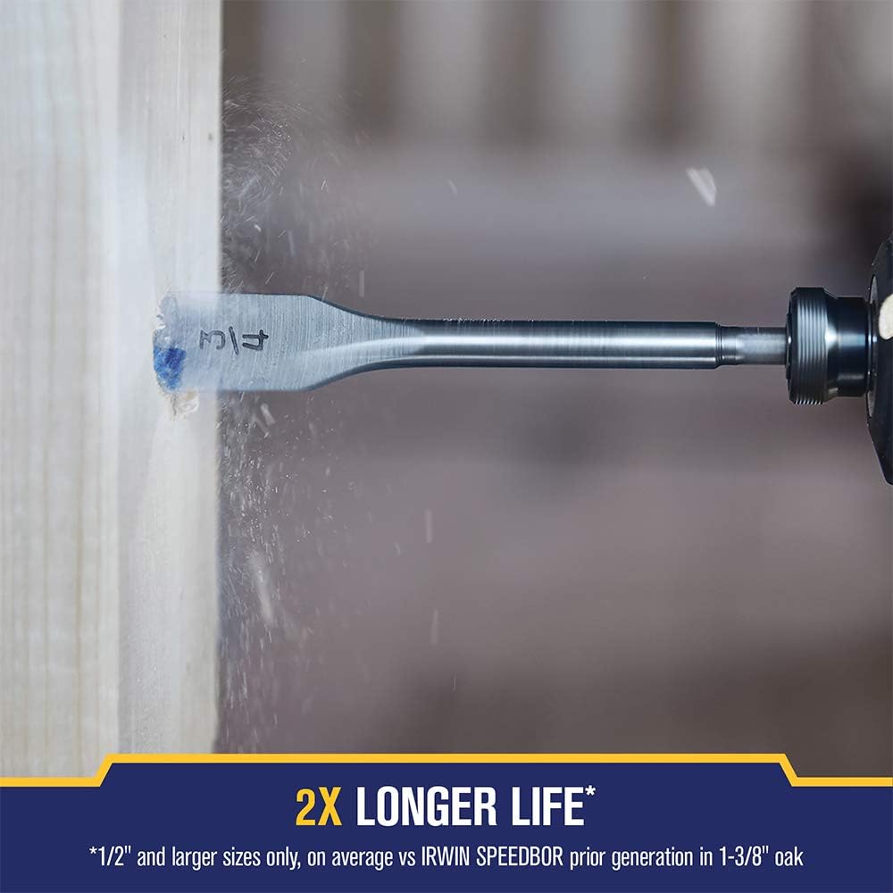 Next-generation SPEEDBOR® Spade Bits feature a patented Blue-GrooveTM cutting edge which allows for aggressive removal of wood chips and fast drilling