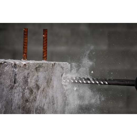 The Milwaukee 1" X 17" X 21" MX4™ 4-Cutter SDS MAX Rotary Hammer Drill Bits with solid head carbide deliver up to 5x longer life in concrete with rebar. Engineered with rebar guards to provide maximum durability in hard aggregate and rebar. We designed our MX4™ 4-Cutter bits with sharp centering tips for exact spot drilling in concrete. The integrated 4-cutter design prevents lock-up in rebar, reducing downtime. Optimized flutes remove dust faster, reducing heat and delivering up to 15% more holes per battery charge. The wear mark indicator on each drill bit shows you when they no longer meet the ANSI requirement. These MILWAUKEE® MX4™ 4-Cutter Drill Bits are ideal for concrete with rebar and masonry applications.