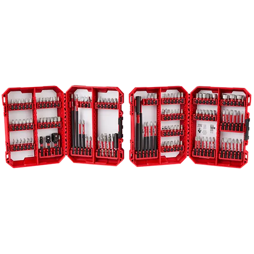 The SHOCKWAVE Impact Duty™ 124PC Driver Bit Set is engineered to be the Most Durable, Best Fitting driver bits on the market. The WEAR GUARD TIP™ delivers increased wear resistance which protects the impact bit's fit over the life of the bit. The SHOCK ZONE™ is optimized for each tip type and length of driver bit in the set to absorb peak torque and prevent breaking. The driver bits have CUSTOM ALLOY76™ for a customized steel and heat treatment per tip type to extend the life of the user's driver bits, providing up to 50X life versus other impact driver bits on the market. The Milwaukee SHOCKWAVE Impact Duty™ driver bits are built to provide users with extreme durability for the most demanding applications. The set is organized in a customizable accessory case designed for use in PACKOUT™.