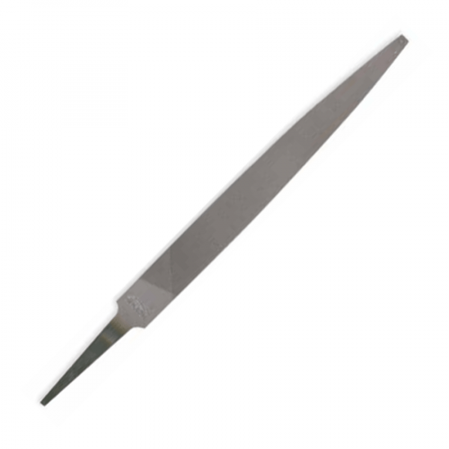Smooth cut warding file, 6 inches/150 mm. Used principally by locksmiths in repairing or filing ward notches in keys. Double-cut on sides, single-cut on edges.