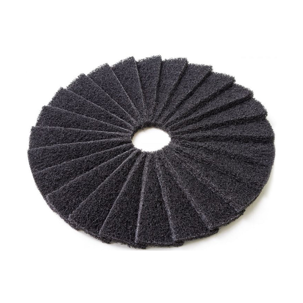 Turbostrip segmented rotary pads provide operators the ultimate cleaning performance in floor stripping. The pad features 24 polygonal segments with overlapped angular edges that bite into floor wax aggressively.