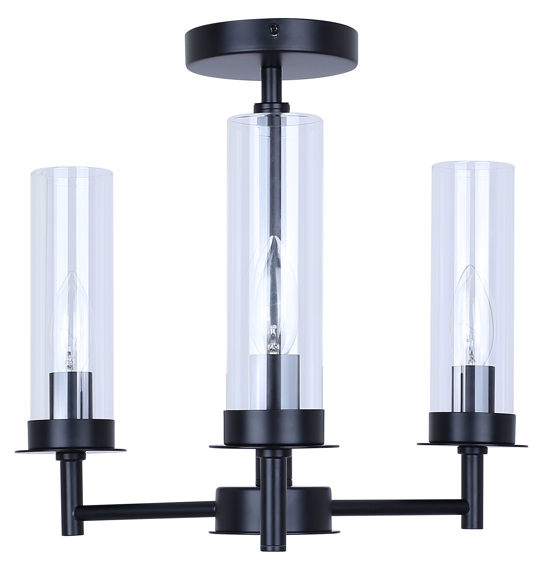 The Benson semi-flush mount effortlessly bridges transitional and modern styles with its simple design featuring three cylindrical glass globes. Black detailing highlights the sleek lines of the globes, adding a touch of sophistication. With its refined aesthetic and versatile appeal, Benson enhances any room with timeless charm.