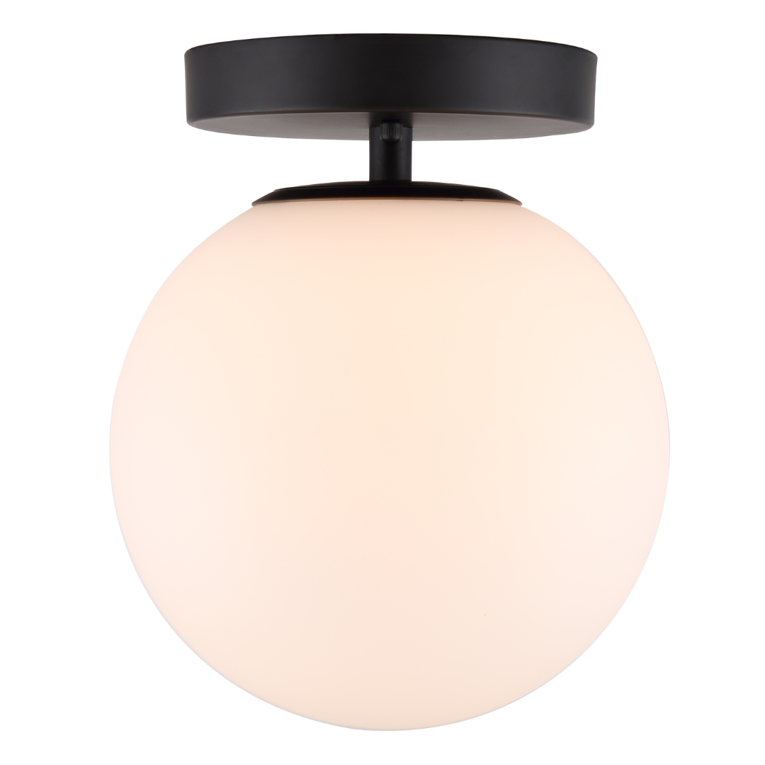 The Camilo flush mount ceiling light boasts a stunning globe shape that lends a timeless elegance to any space. Its chic matte black finish beautifully contrasts with the clear glass shade, creating a sophisticated yet understated look that complements a variety of decor styles. This versatile fixture enhances your home with a touch of refinement, making it an ideal choice for any room.