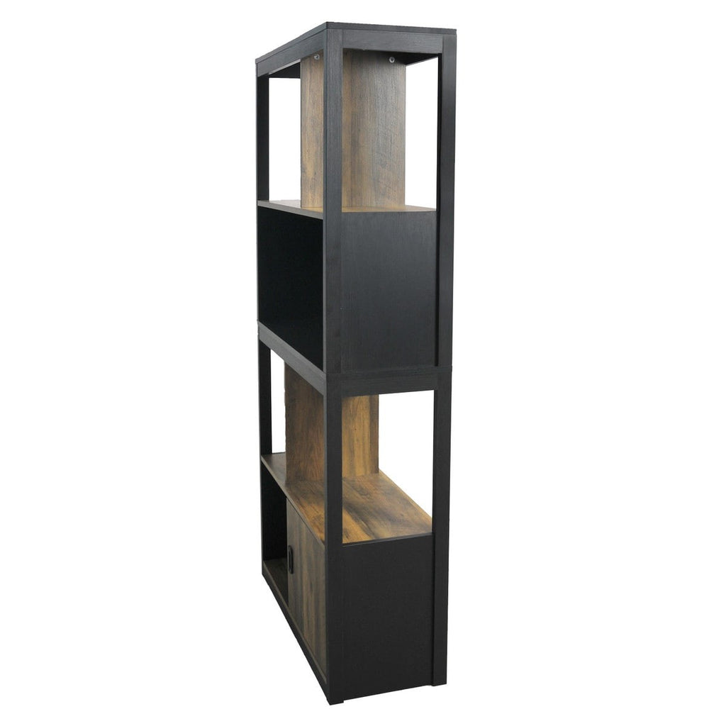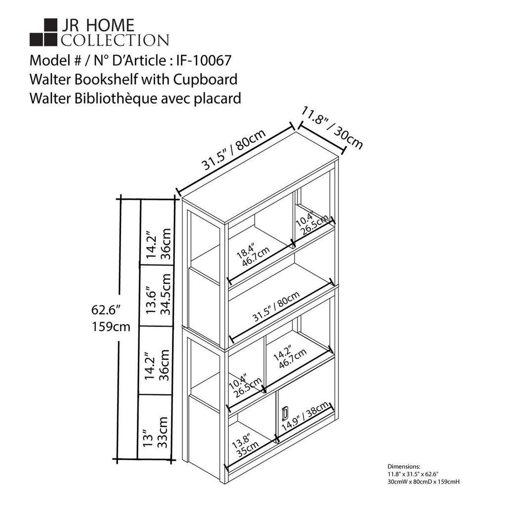 Bookshelves don't have to be boring. Add intrigue and function to your office or living area with the Walter Collection Bookshelf. This 4-level bookshelf features seven sections, including a small cupboard area to hide away clutter. This unit is great for storing books, displaying your favorite home décor items, or small plants.