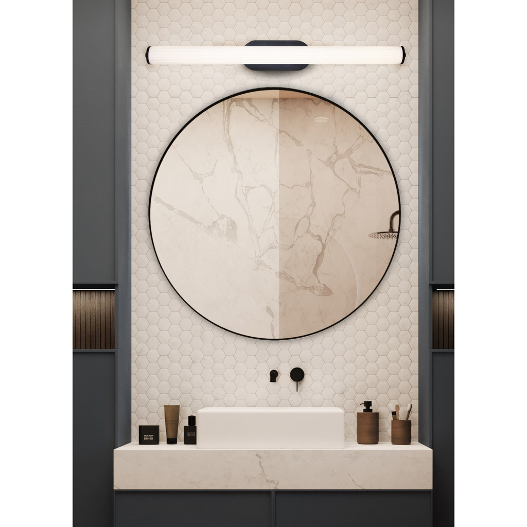 Ozzy is the perfect harmony of modern design and subtle texture. This cylindrical vanity light, adorned with ribbed detailing, adds a touch of luxury to your bathroom. Its streamlined silhouette radiates soft, even light, creating an inviting ambiance while elevating your space with timeless charm.