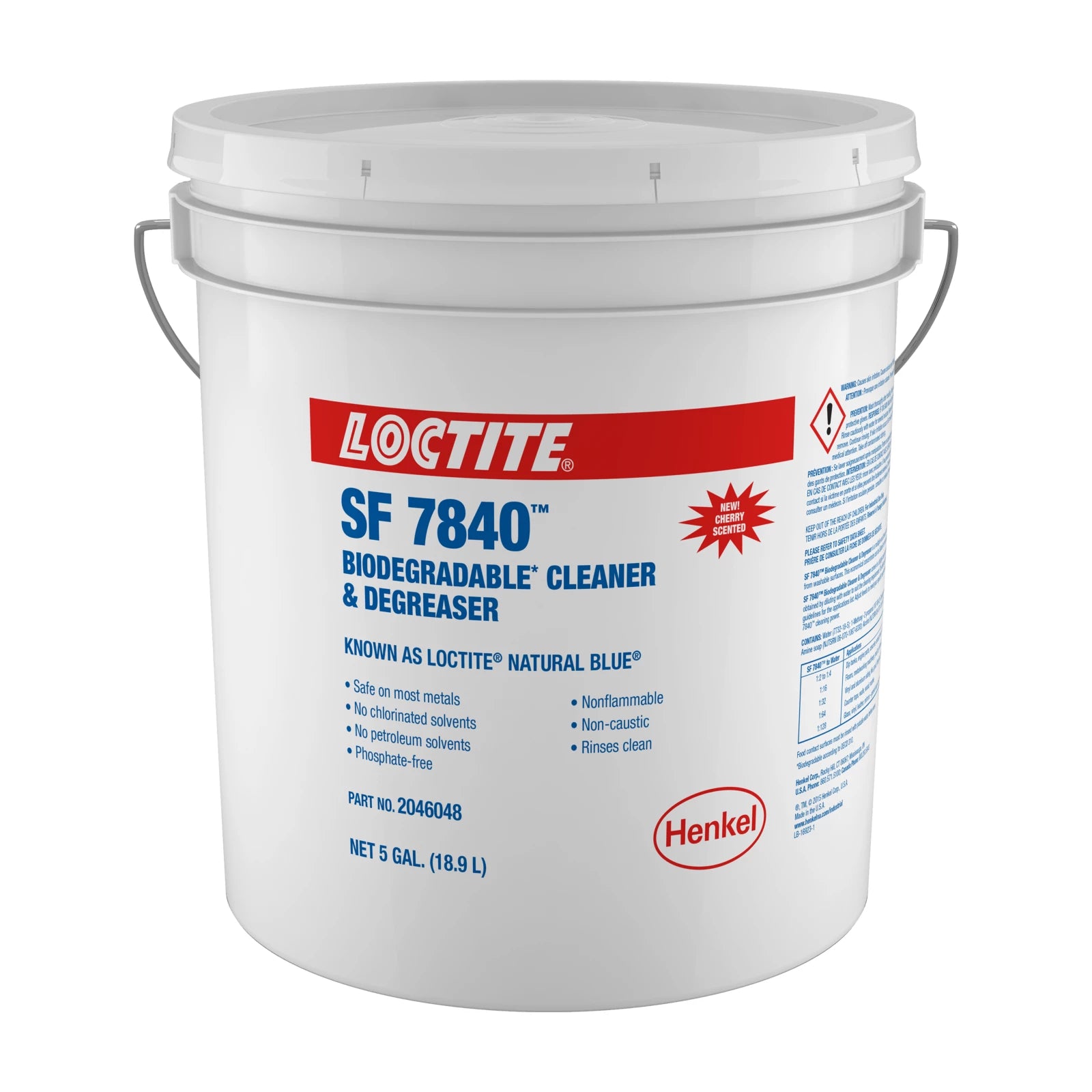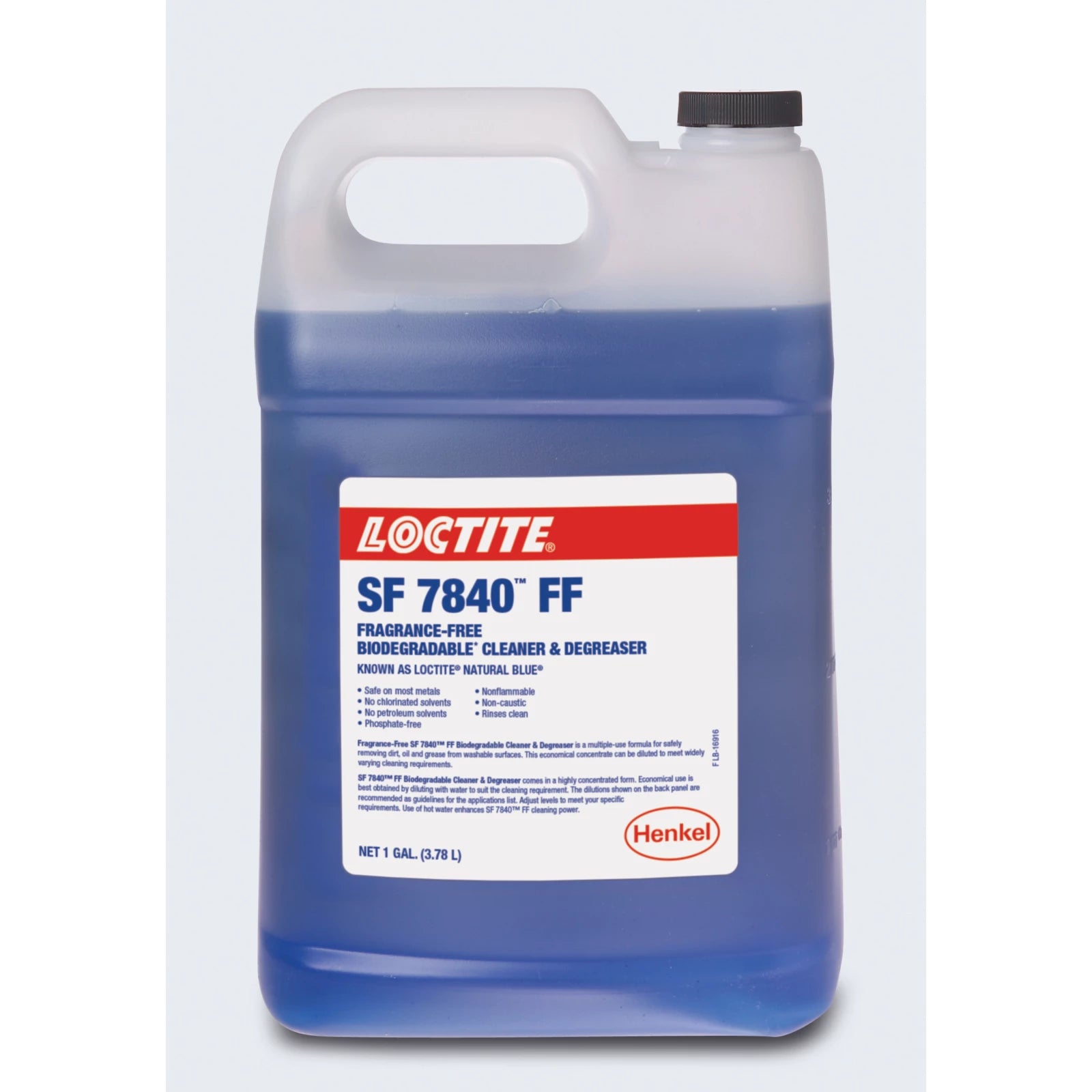 LOCTITE® SF 7840 is a concentrated, biodegradable cleaner that contains no hazardous solvents and dilutes with water to serve a wide range of industrial cleaning applications. Typical applications for this product include engines, motors, castings, valves, bearings, tanks, machinery, windows, carpets, and concrete floors. The product can remove grease, lubricants, cutting oils, fuel oils, tar, road salt, light carbon, food stains, wax, animal fat, mildew, and soot.
