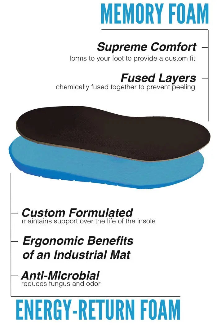 This is not just another insole. Working on hard, uncomfortable flooring all day? You need an industrial strength mat. Try SoleMat’s “Matting On The Go” insoles! Matting On The Go technology provides the ergonomic benefits of industrial matting, with the familiar comfort of memory foam.