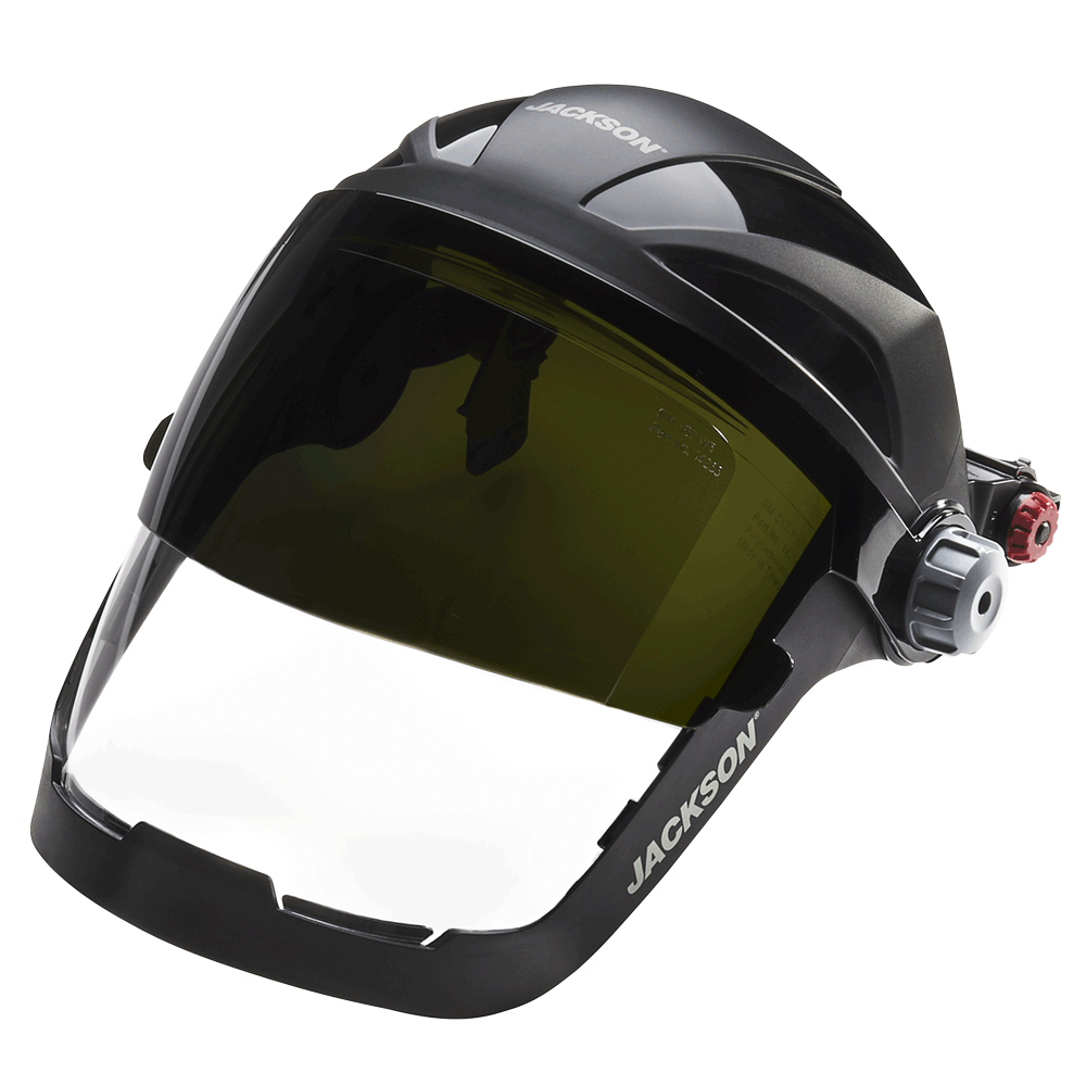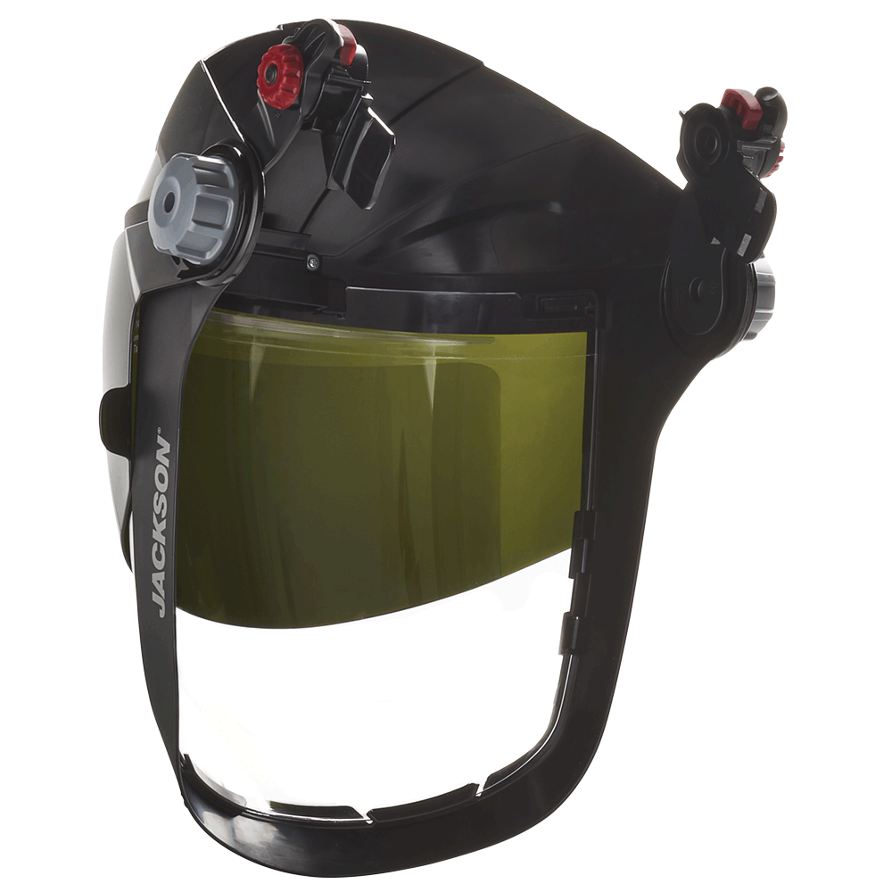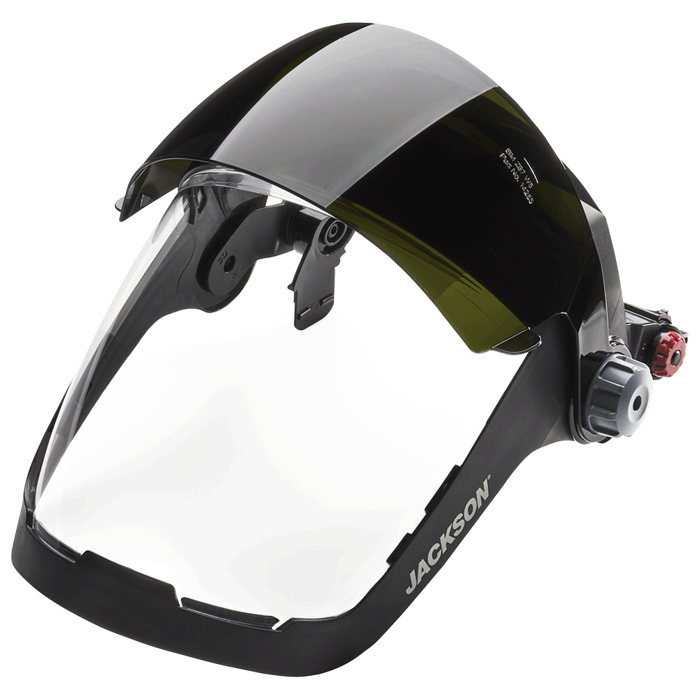 Welding Face Shield - Jackson Safety Quad 500® Series 370 Speed Dial™ Shade 8 Flip-Up Window and HHIS Universal Hard Hat Slot Adaptor 14235