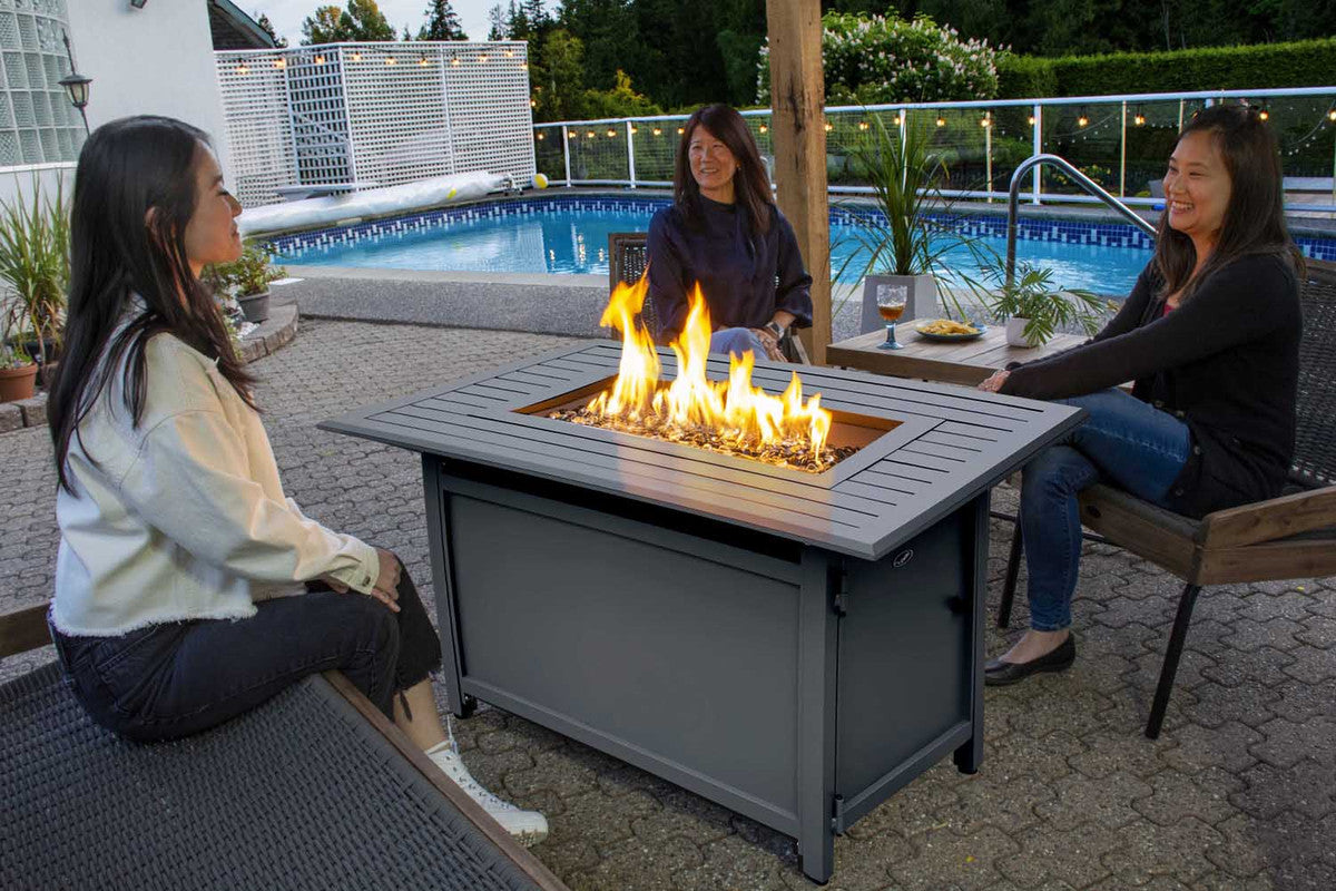 Outdoor Heater - JR Home - Paramount Gale Aluminum Convertible Fire Table, Rectangular, Battleship Grey, FP-341-GY 2
