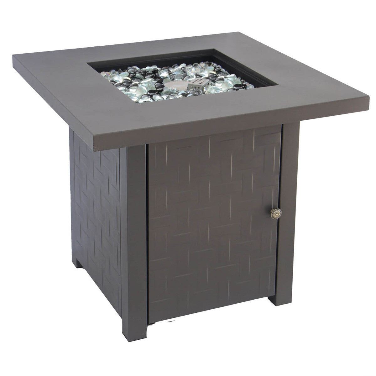 The Laureen Steel Fire Table is a great way to get warm on cool Fall days and winter nights. This 40,000 BTU outdoor heater is made of stamped powder coated steel in a beautiful weave design with a smooth top.
