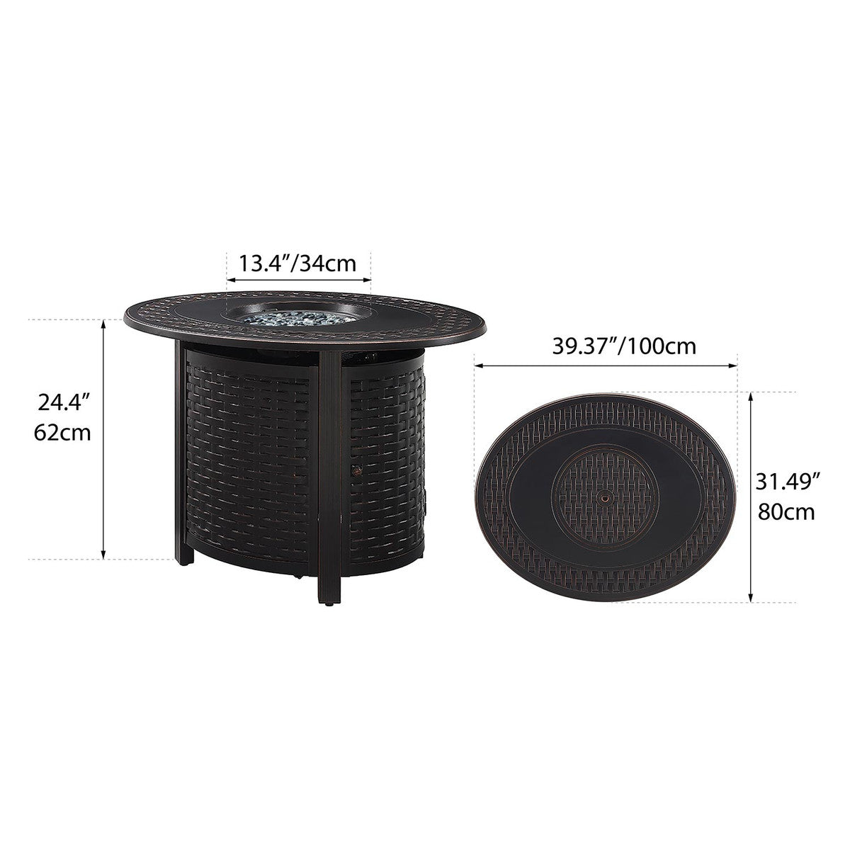 Outdoor Heater - JR Home - Paramount Thatch Convertible Aluminum Firepit, Oval, FP-450