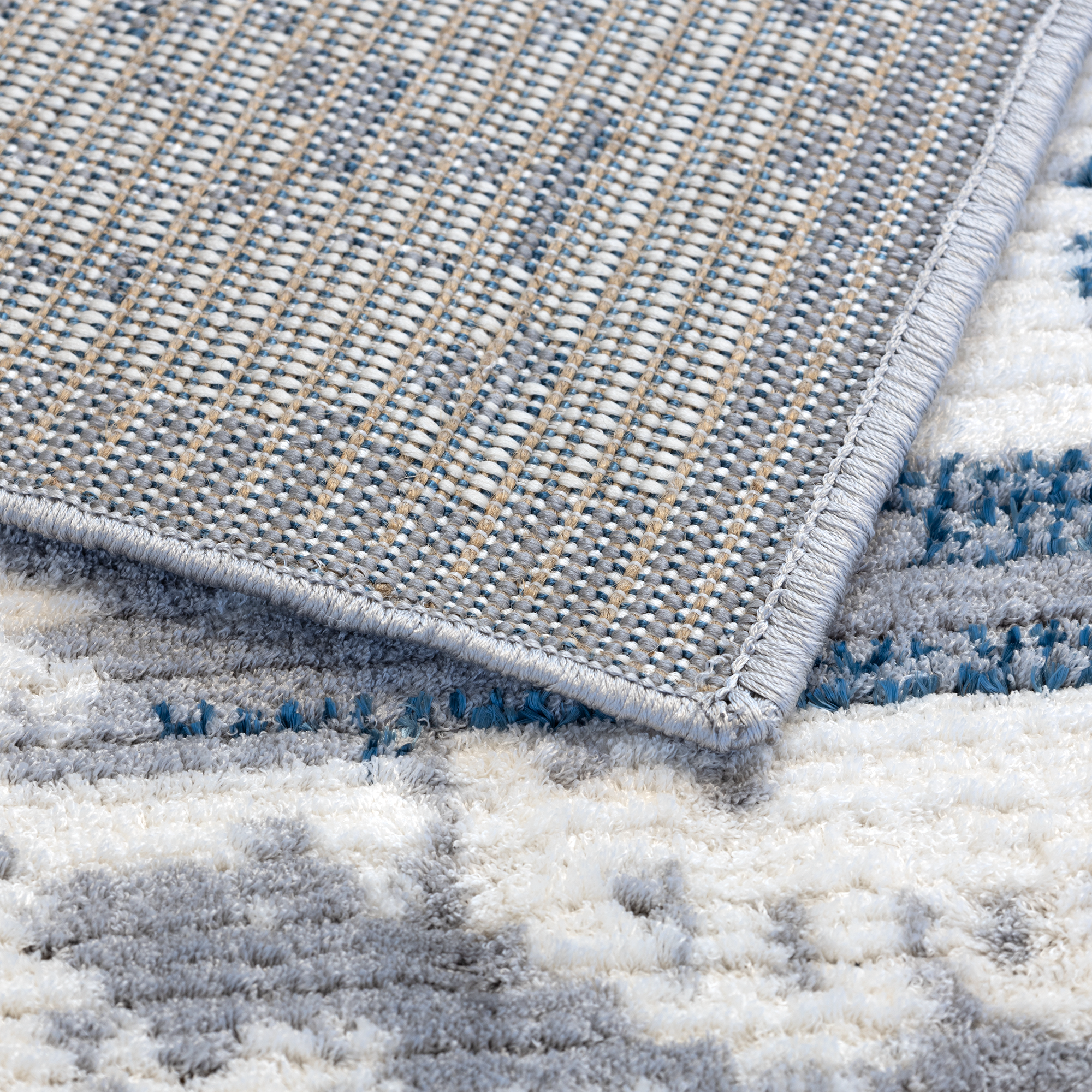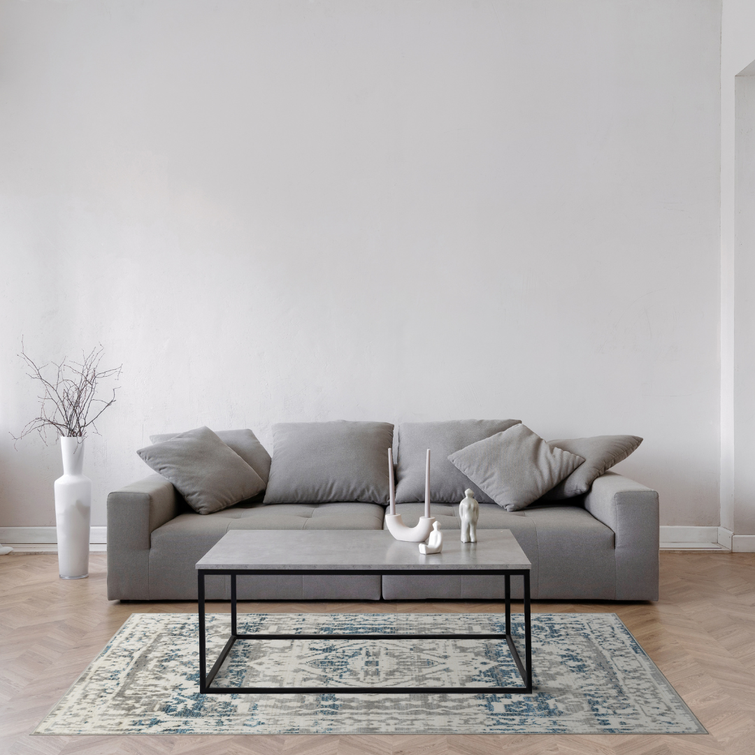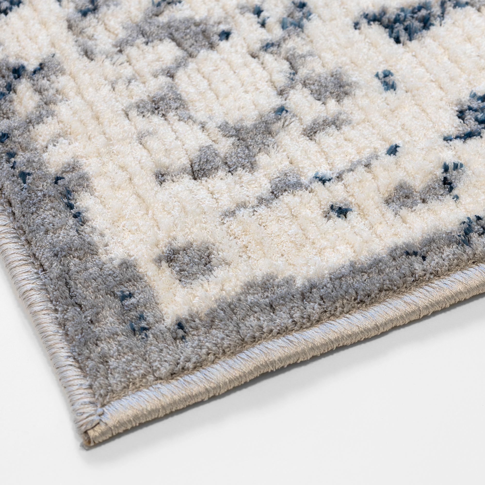This indoor area rug is the perfect choice for anyone who wants to add both style and durability to their home. An incredibly soft area rug with multi-coloured blue, grey, and silver hues, a medium-low pile height for high-traffic areas, and a latex backing, that’s easy to clean.