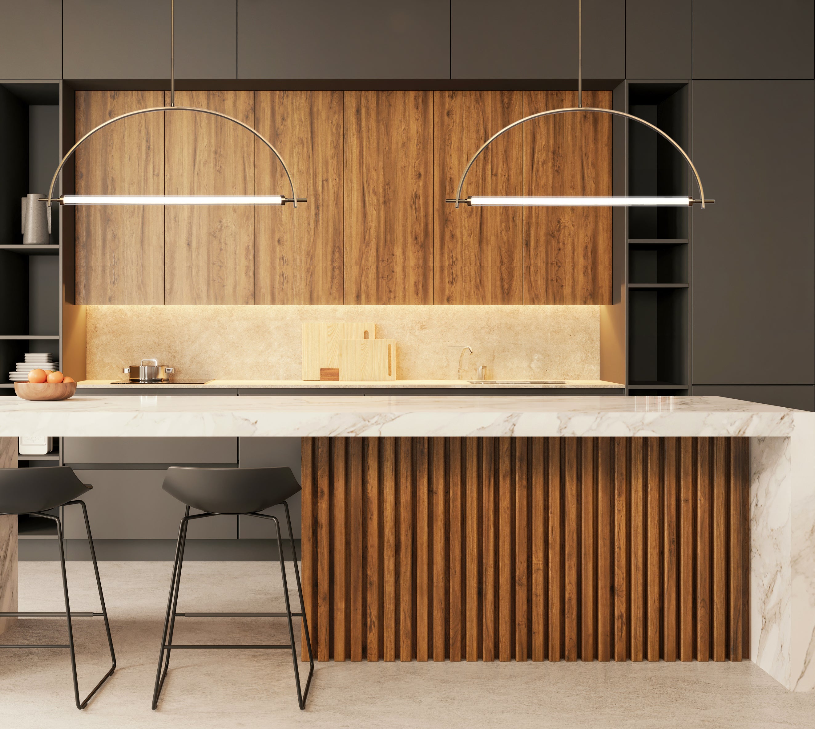 The Keaton chandelier is a stunning blend of modern design and structural elegance, designed with a unique arch that perfectly frames an LED acrylic light. Keaton offers both form and function, casting a sleek, even glow throughout your space. Perfect for contemporary homes, Keaton adds a touch of sophistication with its smooth, innovative design.
