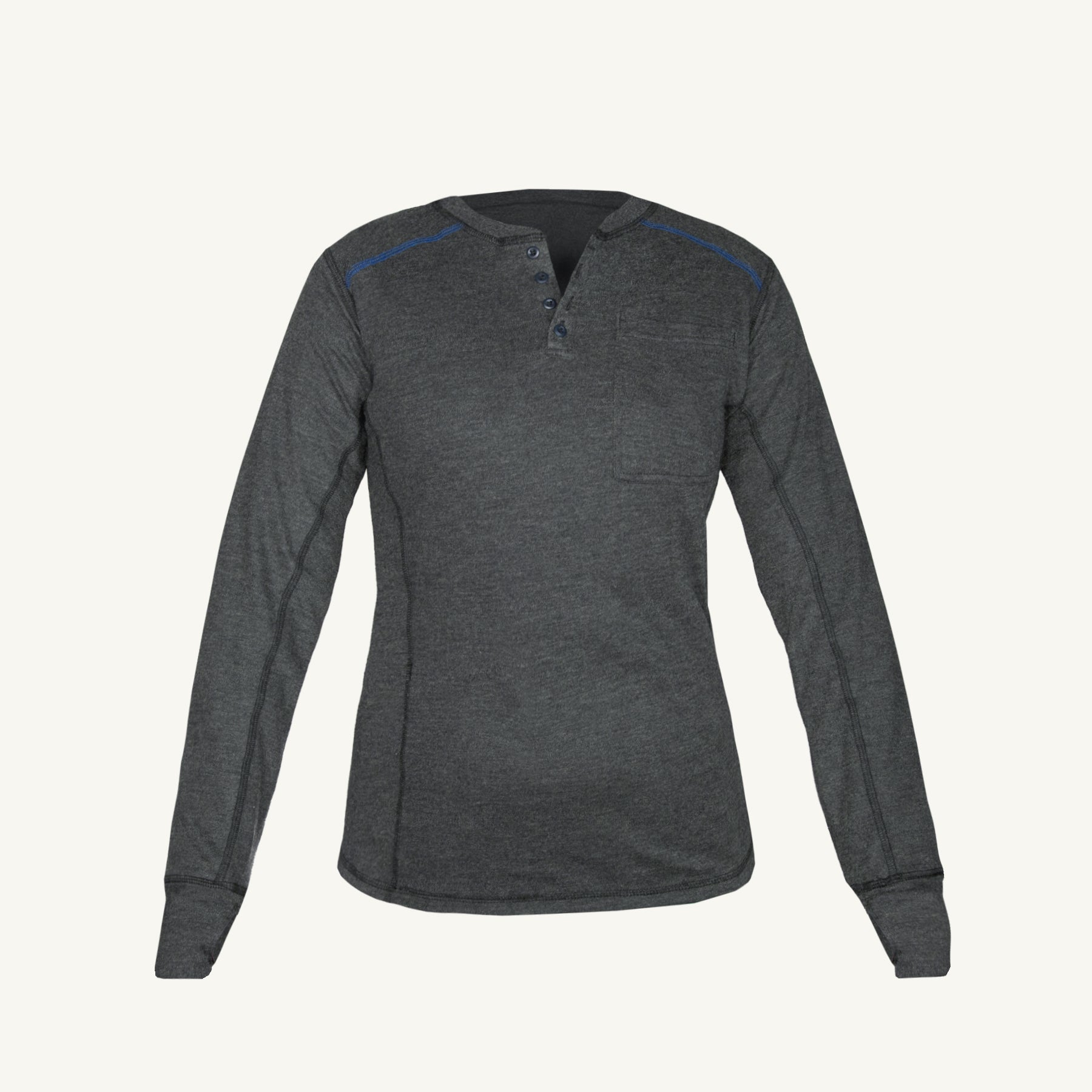 Women’s inherently FR henley shirt with flash fire and arc flash protection