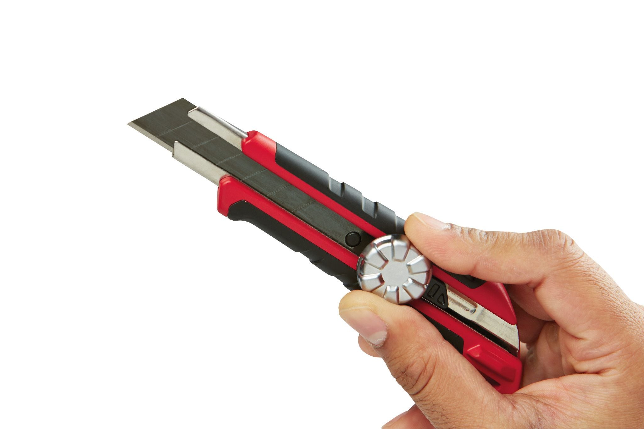 The Milwaukee® 25mm Snap-Off Knife has a new to world all metal lock designed for maximum durability that will hold up to 10x longer. The lock comes with a speed thread that allows for 2x faster blade adjustments. This snap-off knife comes with a 7-point detail-cut, microcarbide blade and will last up to 2x longer, and up to 50% sharper. The overmolded handle offers a slip resistant grip and is acetone resistant and is backed by Milwaukee's Limited Lifetime Warranty.