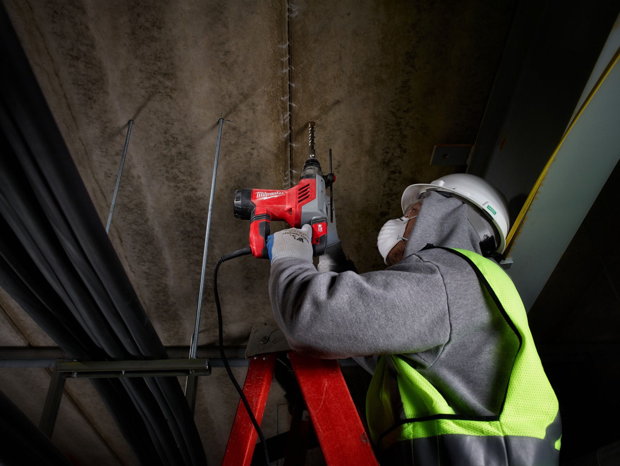 Get up to 85% Faster Drilling and 85% Harding Hitting while reducing Vibration to only 10.6 m/s2. With a powerful 8 amp motor, this rotary hammer delivers 0-1,500 RPM, 0-5,500 BPM and 3.6 ft-lbs of impact energy. This tool also has an all metal gear case and mechanical clutch to provide maximum durability. At only 12-1/2” inches long and 7-1/2 lbs, this tool makes for a very powerful and lightweight 1-1/8” 3-mode rotary hammer. The kit includes a side handle, depth rod and carrying case.