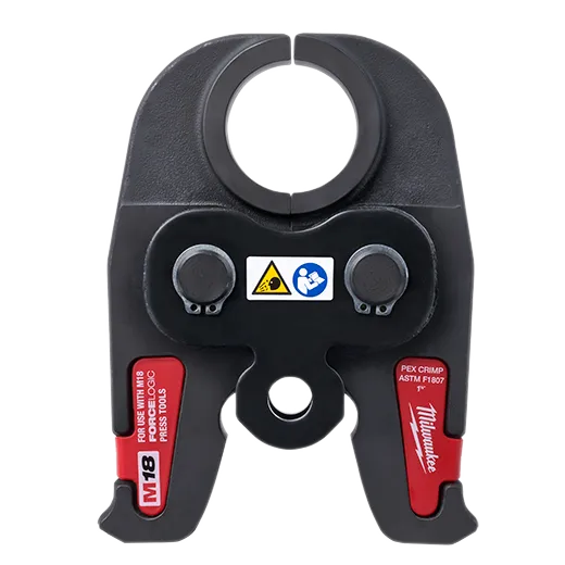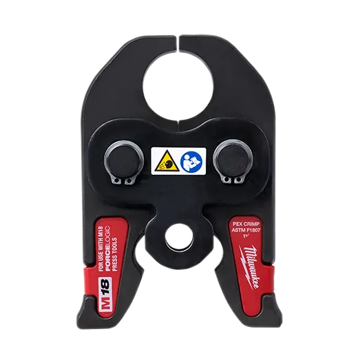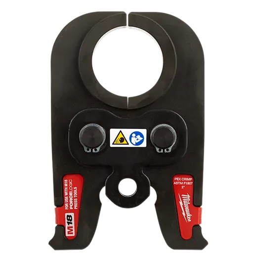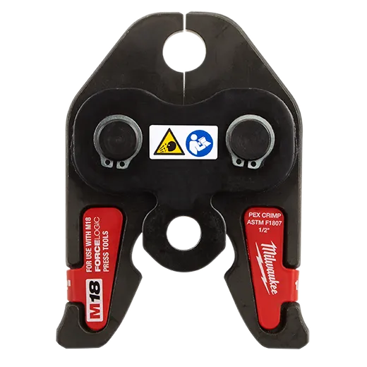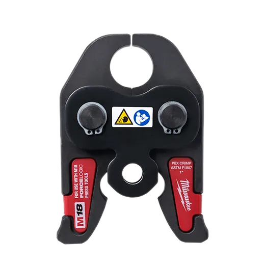 The PEX Crimp Jaws for M18™ FORCE LOGIC™ Press Tools provide an easy to use solution for PEX crimp installations, eliminating the repetitive strain required with hand tools. With an easy open, in line design, the jaws are optimized for the tightest spaces, utilizing the M18™ FORCE LOGIC™ Press tool, or the extended stroke M18™ FORCE LOGIC™ Long Throw Press tool. These PEX crimp jaws offer the highest confidence for quality connections, as the spring-loaded opening grips the ring for precise alignment to the fitting, and a green light on the press tool indicates a completed crimp. Compatible with F1807 Connections.