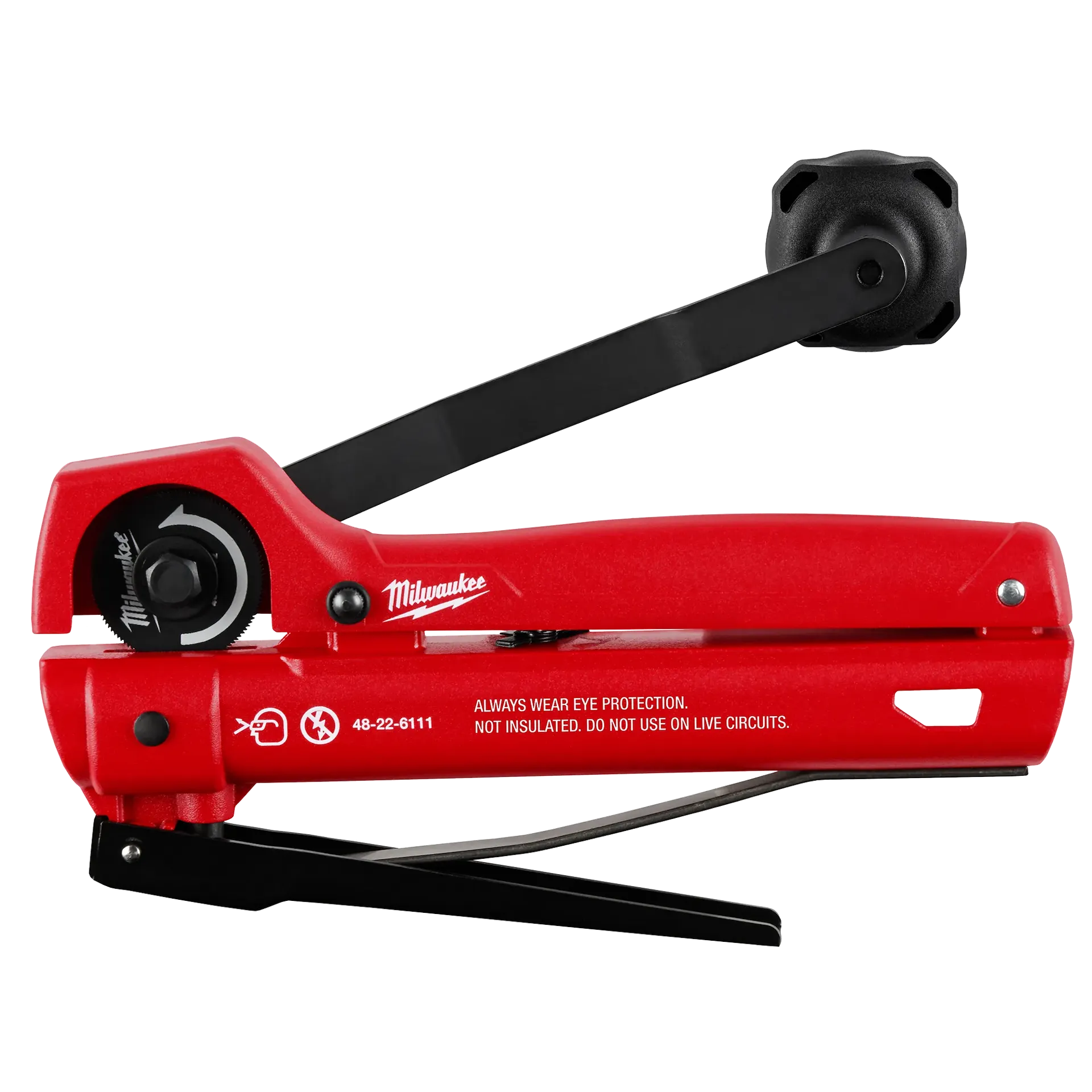 The Armored Cable Cutter delivers easy armored cable cutting through MC, AC, BX, MCAP®, and Greenfield armor. The armored cable cutter features a self-adjusting armor clamp for fast and easy armor clamping. The armored cable cutter also offers a cut-depth switch allowing for quick adjustments between standard MC and reduced MC. The cutter delivers an easy blade change design and is equipped with extra blade storage conveniently located in the rotating handle. The Armored Cable Cutter is backed by a Limited Lifetime Warranty.