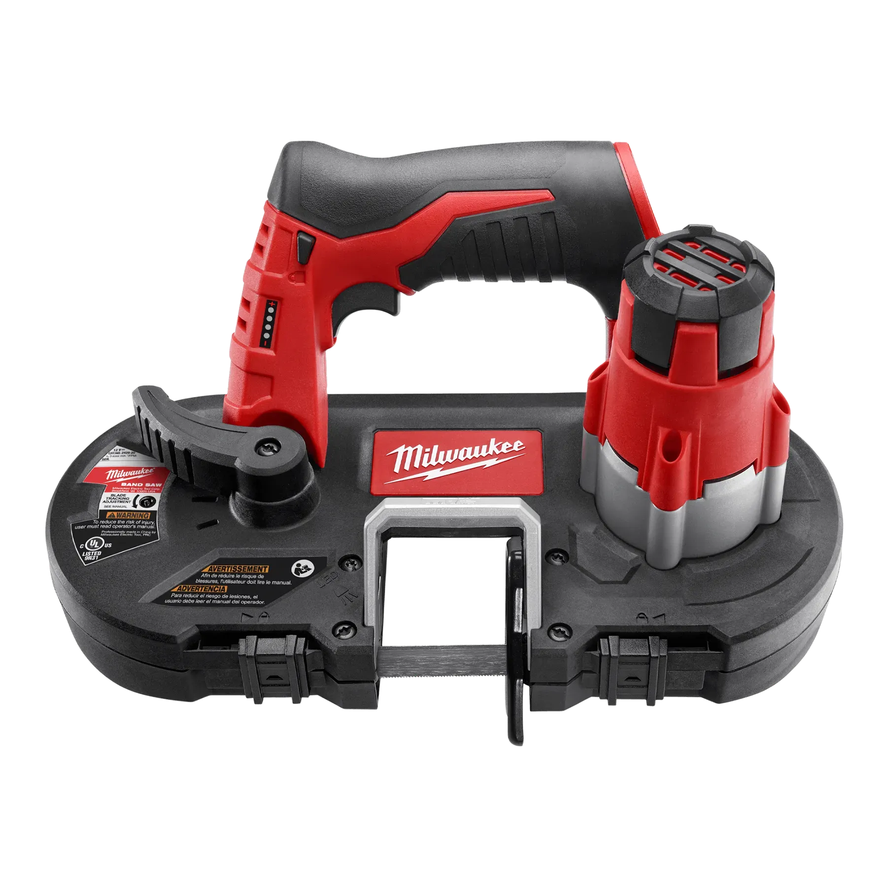 The Milwaukee 2429-20 M12™ Sub-Compact Band Saw is the most compact and lightest weight cordless band saw on the market. At less than half the weight and size compared to a traditional deep cut band saw, the M12™ Band Saw provides one-handed power and portability to electricians, maintenance professionals, and other users cutting small diameter materials. The M12™ Band Saw weighs only 6.75 lbs and 12” in length, making it ideal for overhead or one-handed cutting applications. This powerful saw can cut through ¾” EMT in only 3 seconds, and will get over 150 cuts per charge with the M12™ REDLITHIUM™ XC High Capacity battery. With a 1-5/8” x 1-5/8” cut capacity and low vibration, the M12™ Band Saw performs clean cuts on the most common small diameter metal cutting applications. The M12™ Band Saw also features a dual-latching lower guard that covers the blade outside the active cutting area, addressing OSHA guarding requirements and making the tool suitable for one-handed use. The tool also includes a variable speed trigger, and LED light. Backed by Milwaukee’s® 5-year warranty the 2429-20 M12™ Band Saw Bare Tool comes equipped with (1) 18 TPI metal cutting blade. Battery and charger are sold separately with this model. The M12™ Sub-Compact Cordless band saw should be used only with Milwaukee® 48-39-0572 Sub-Compact Portable Band Saw Blades.