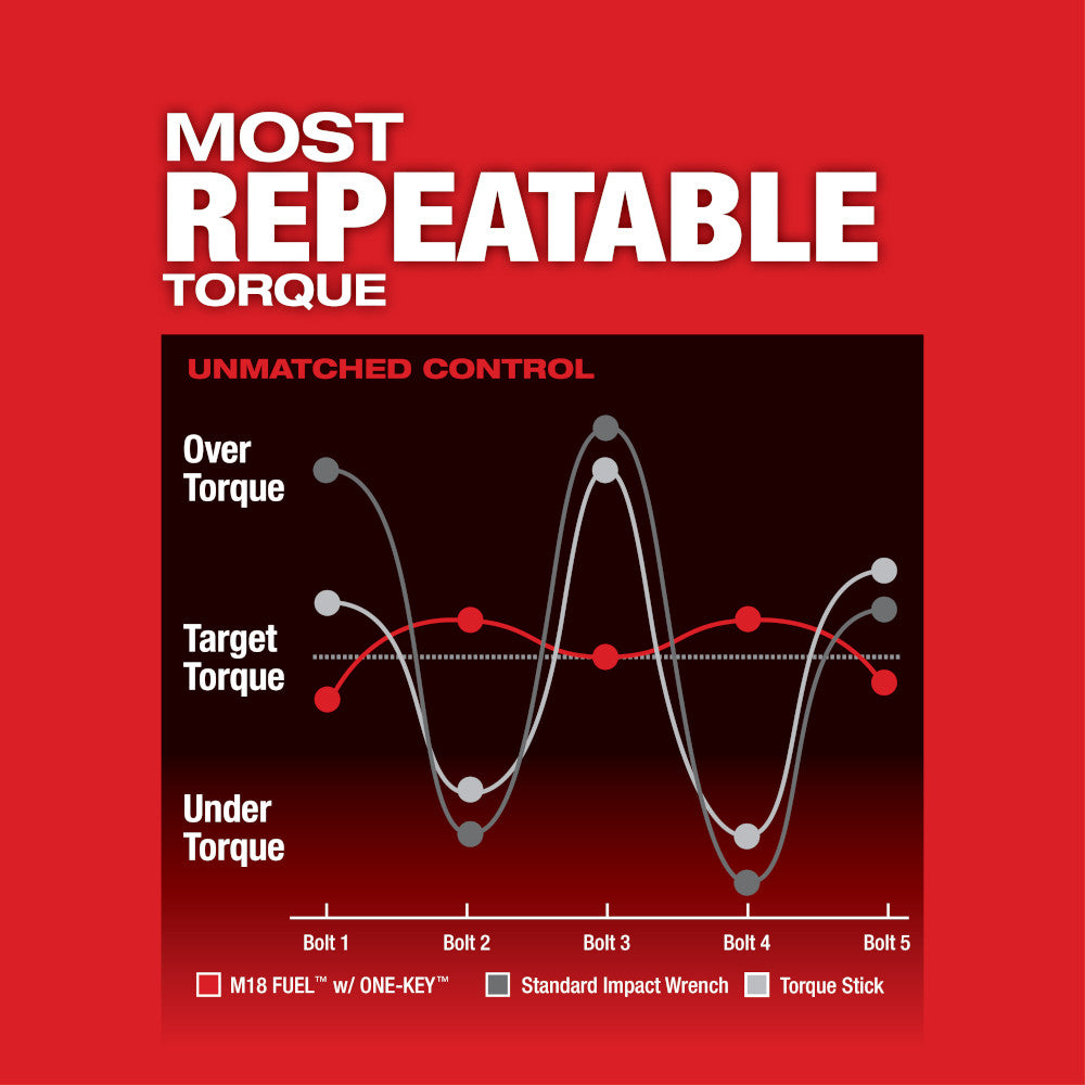 - M18 FUEL with ONE-KEY™ technology provides the most repeatable Impact Wrench in the industry