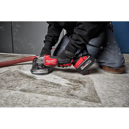 The M18 FUEL™ 4-1/2" / 5" Braking Grinder with ONE-KEY™ Paddle Switch, No Lock is the next advancement in power and performance of cordless grinders while enhancing safety with its RAPIDSTOP™ Brake. The M18 FUEL™ 4-1/2" / 5" Braking Grinder with ONE-KEY™ generates 11A corded power to complete the toughest grinding and cutting applications. The POWERSTATE™ Brushless Motor delivers maximum sustained power and 8,500 RPM to remove material faster and increase productivity. REDLINK PLUS™ Intelligence ensures unmatched levels of performance, protection, and compatibility. The RAPIDSTOP™ Brake provides stop times under 2 seconds with an abrasive disc. Our M18 FUEL™ 4-1/2" / 5" Braking Grinder with ONE-KEY™ includes an electronic clutch for kickback protection, as well as overload protection to maximize motor life. Compatible with ONE-KEY™, this grinder wirelessly connects to a smartphone to track and manage the tool, providing you with visibility to where tools are across your network of jobs. The M18™ REDLITHIUM™ HIGH OUTPUT™ XC6.0 Batteries (not included) deliver 50% more power while running 50% cooler than the M18™ REDLITHIUM™ XC Batteries. Experience faster accessory changes, and less downtime with tool-free accessory and guard adjustments, while remaining fully compatible with the most common accessories in the market. The MILWAUKEE® M18 FUEL™ 4-1/2" / 5" Braking Grinder with ONE-KEY™ is the next level of jobsite productivity and enhanced safety in cordless grinders.