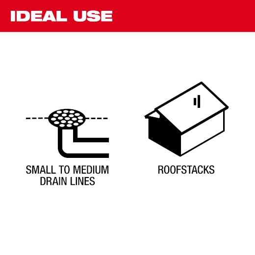 M18™ FUEL™ SWITCH PACK™ sectional drum system is the first drain cleaning solution that combines the benefits of sectional and drum machines, creating the single most versatile and mobile machine on the market. Tackling the most frequent challenge of any drain cleaning application, getting the machine onto the job, the SWITCH PACK™ system utilizes a modular design with backpack straps for the easiest transport to any roof, drain, crawl space, or runout. The tool-free drum connection allows users to quickly interchange between cable sizes, or add a second drum to reach 100 Ft. down the line. All SWITCH PACK™ drums are fully enclosed providing the best protection against protection against mess.