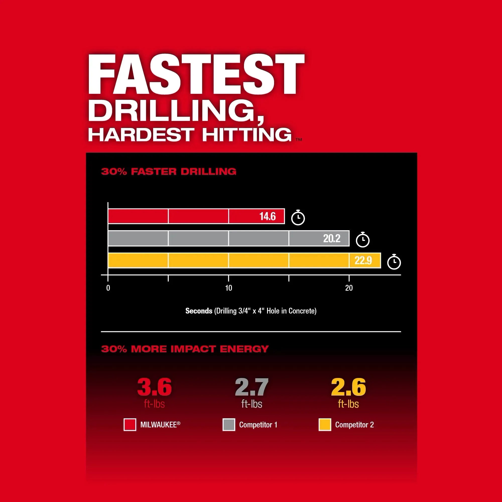 • Pairs with 2915-20 M18 FUEL™ 1-1/8" SDS Plus Rotary Hammer w/ ONE-KEY™