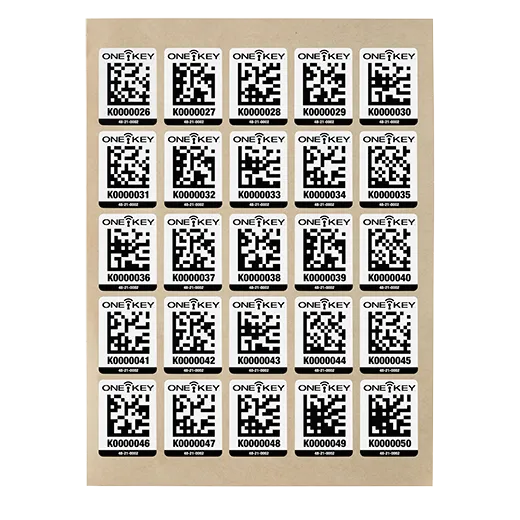 - Machine-readable 2D data matrix code allows for quick, reliable identification with every scan