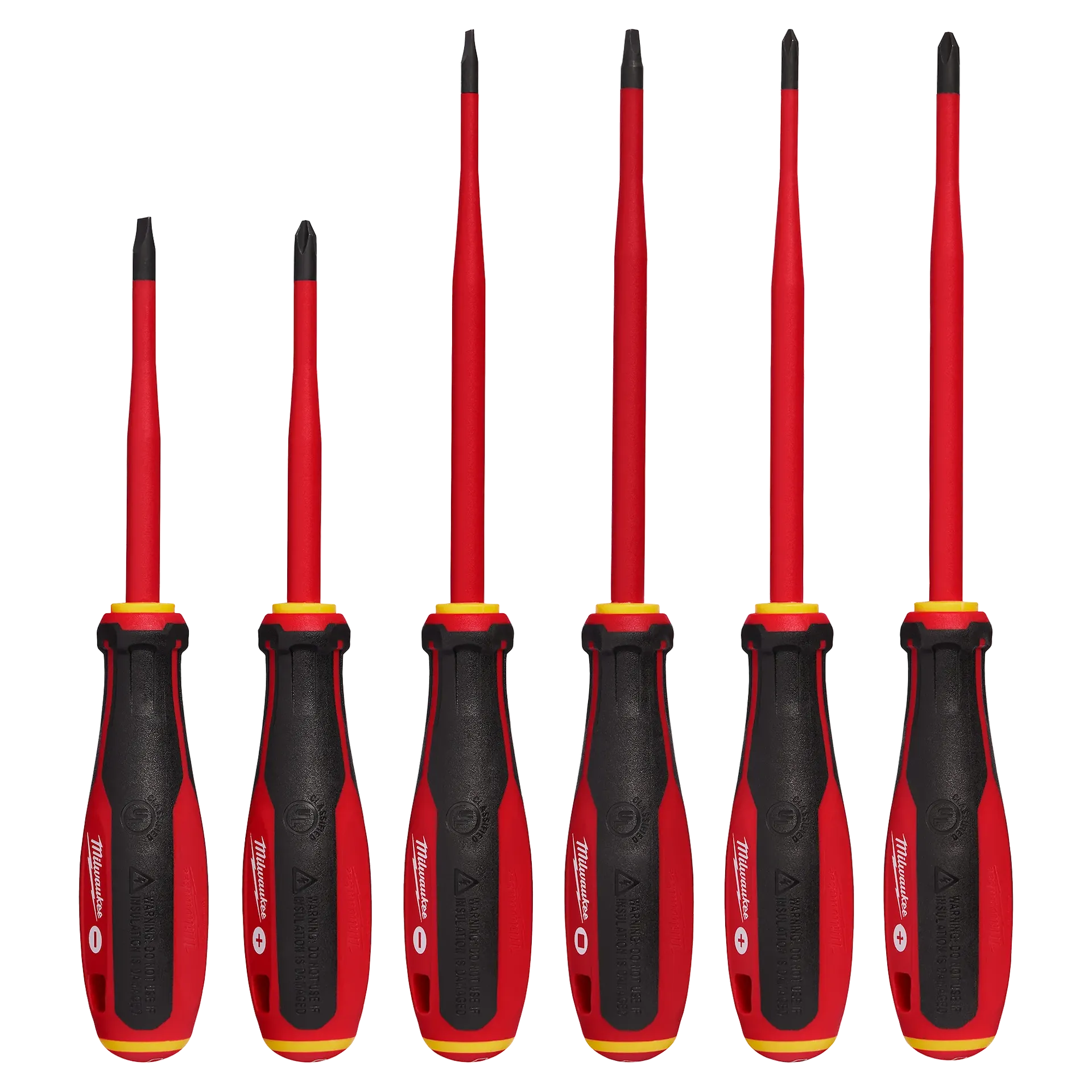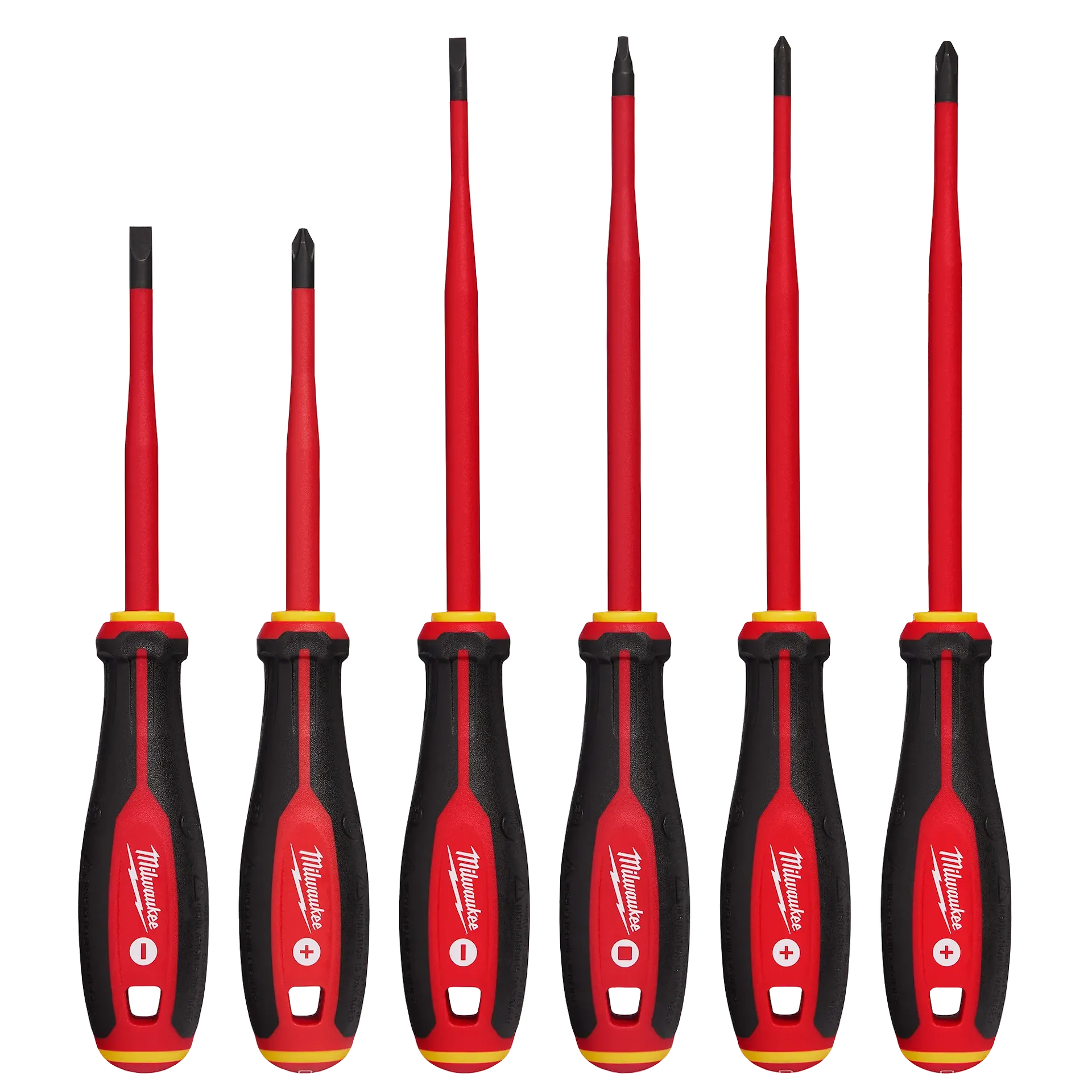 The MILWAUKEE® 1000V Insulated Slim Tip Screwdriver Set features a flush insulation layer at the screwdriver tip delivering easy access into tight spaces. The 1000V rated layer of insulation is flame retardant and impact resistant, and the magnetic tip helps to prevent accidental screw drops. Our Milwaukee® 1000V Insulated Slim Tip Screwdrivers feature a comfortable tri-lobe handle and include common tip types such as Phillip's, cabinet, and square. These insulated screwdrivers are backed by our Milwaukee® Limited Lifetime Guarantee.
